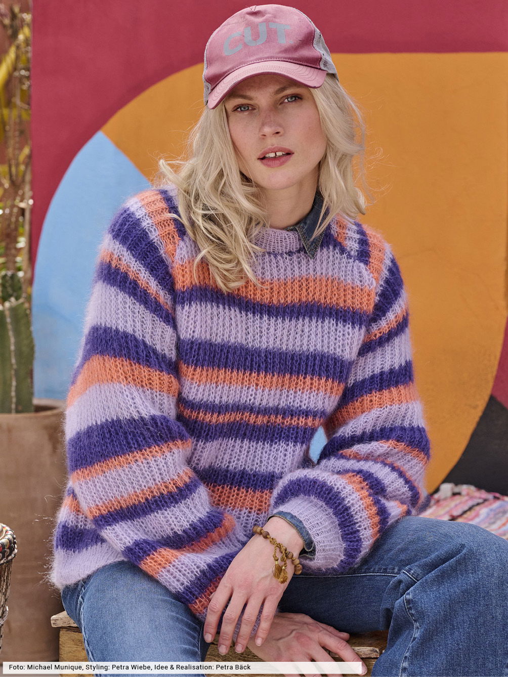 Zart war gestern. Denn jetzt bereichern leuchtende Farben die herbstliche Masche. Hier als lässiger Raglanpulli, dessen unregelmäßiges Streifenspiel mit «patenten» Rippen kombiniert und doppelfädig verstrickt wird. Zum Schluss musst du nur noch alle vier Teile zusammenähen und mit einer elastischen Halsblende vervollständigen. Das Ergebnis? Ein aparter Begleiter, dessen weiches Mohairgarn mit hochwertiger Seide versponnen wird – ein toller Mix, der hohen Tagekomfort garantiert.