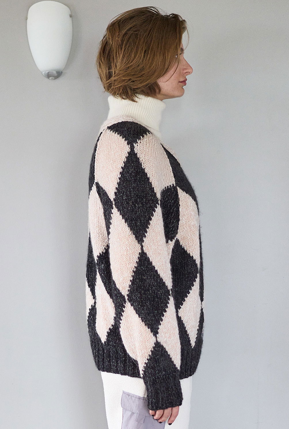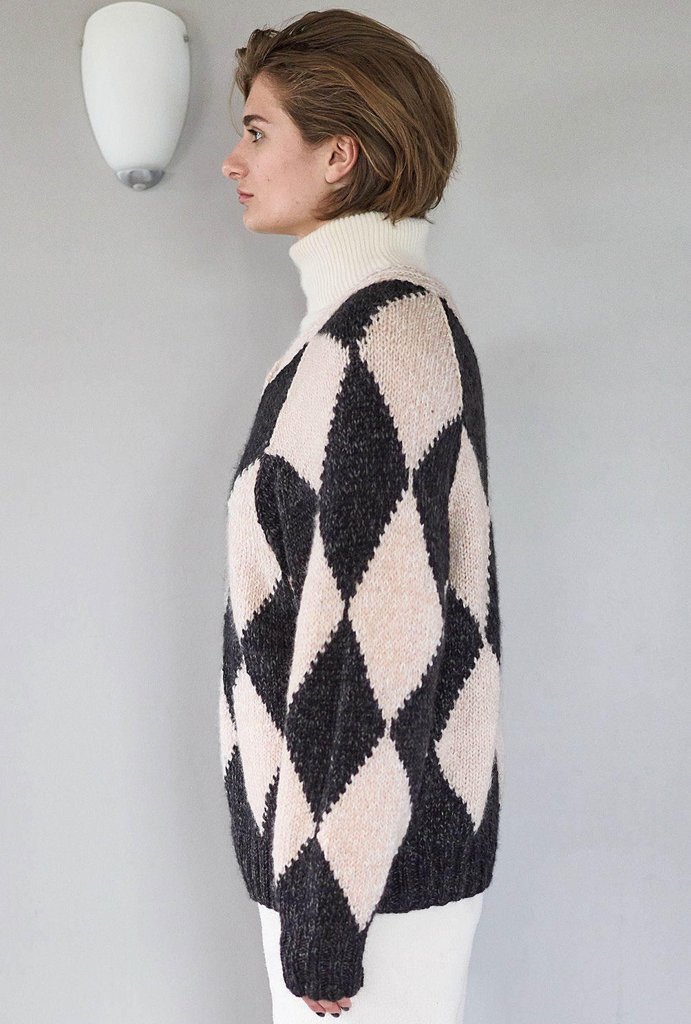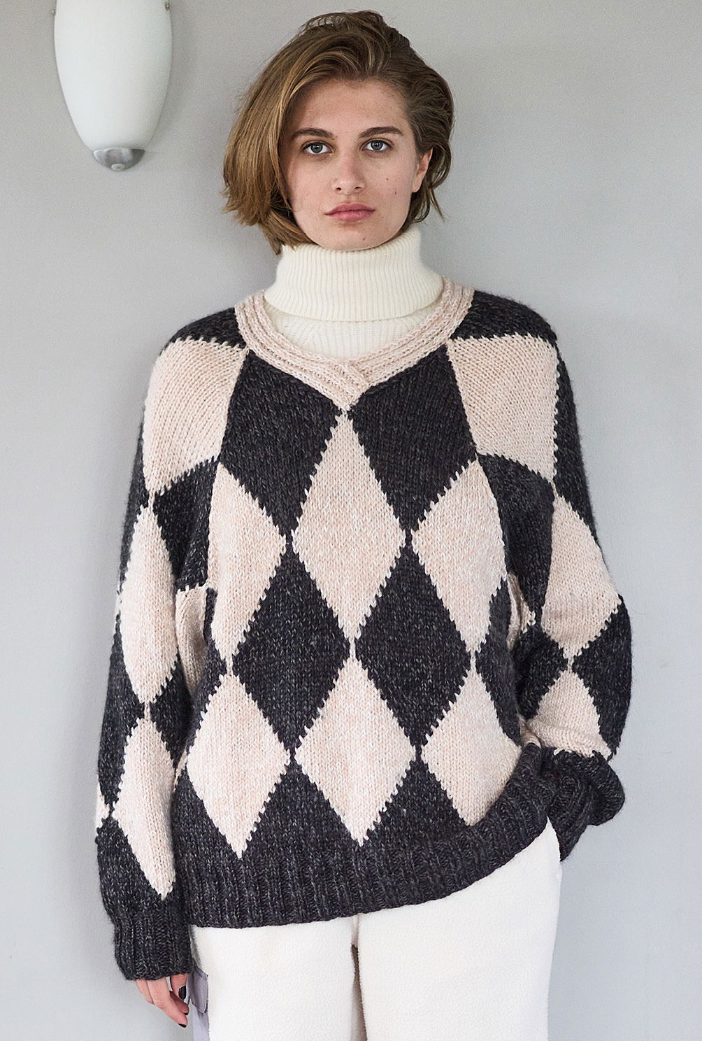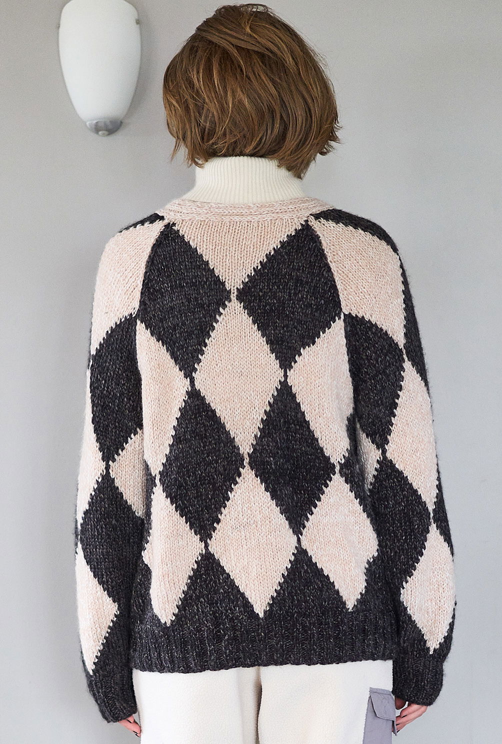 Material: 250 g Schwarz (Fb 10) und 200 g Beige (Fb 01) "Wooly Shine" (70% Schurwolle, 29% Polyacryl, 1% Elasthan, LL = 125 m/50 g) von AUSTERMANN. Je 1 Paar Stricknadel Nr 5 und 6 sowie 1 Rundstricknadel Nr 5.
