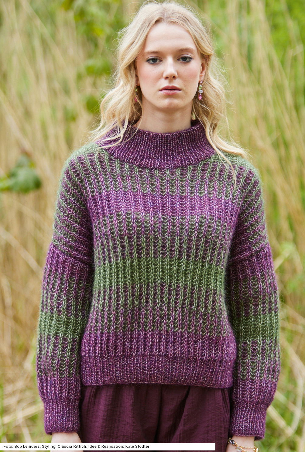 Sabrina Strickjournal Pulli mit zweifarbigem Patent in Brombeer und Oliv
