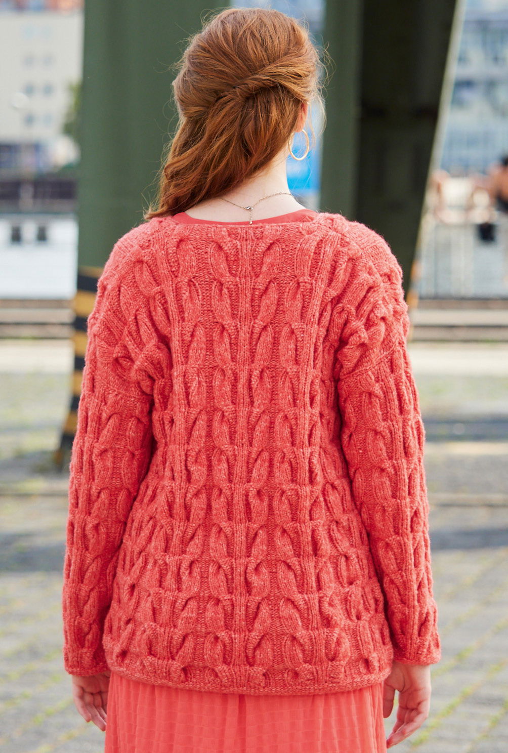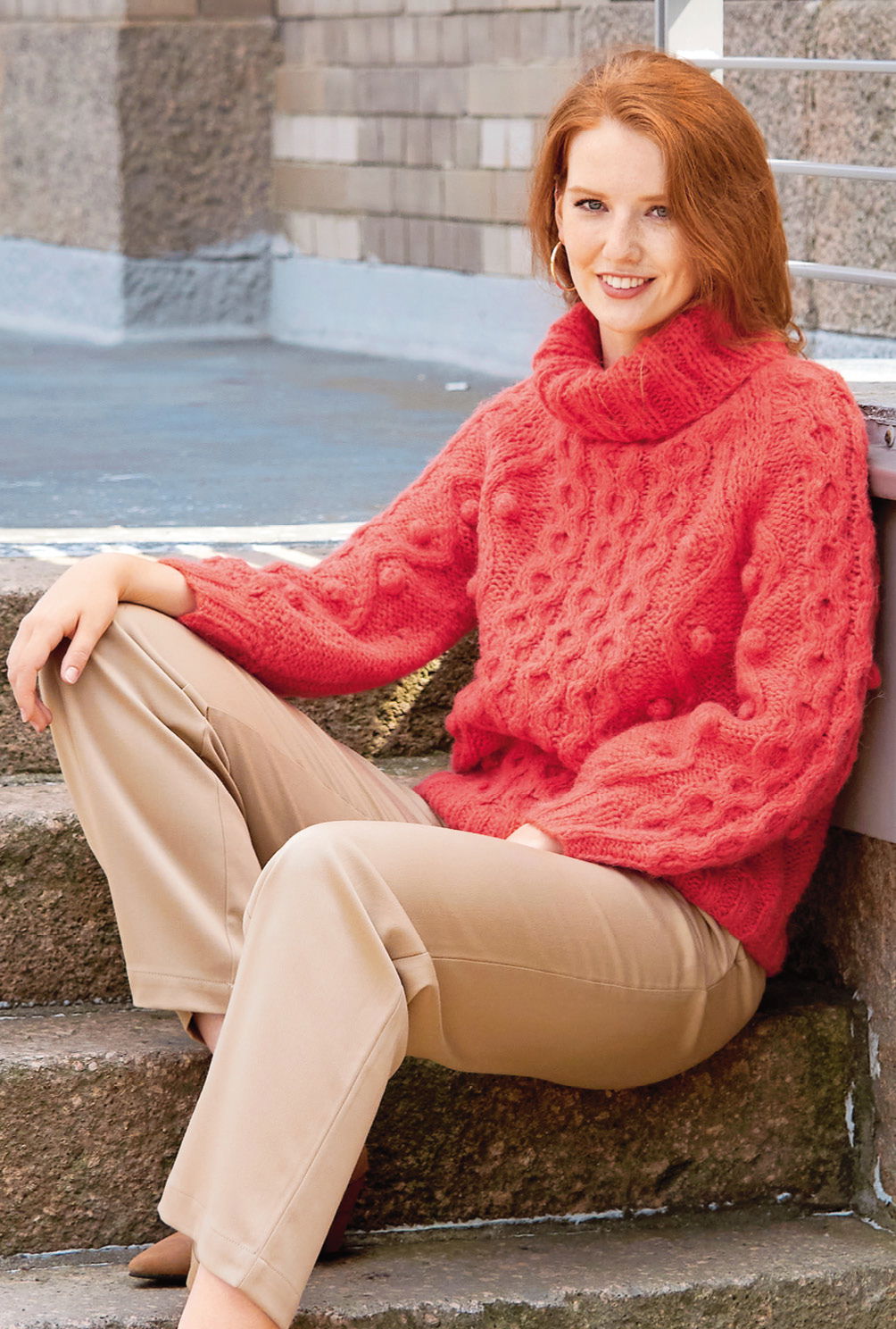 Warme, weiche und leicht voluminöse Maschen stehen für winterliche Natürlichkeit. Perfekt umgesetzt bei diesem Rolli, dessen markante Waben- und Noppenmuster im Mittelpunkt stehen. Die Mustervielfalt benötigt zwar durchaus ein wenig Aufmerksamkeit, aber die klaren Strickschriften für die Zöpfe und Noppen in der Anleitung helfen dabei, stets den Überblick zu behalten. Sind alle vier Teile fertig gestrickt, werden noch alle Nähte geschlossen und aus dem Halsausschnitt der Rollkragen im Rippenmuster herausgestrickt.