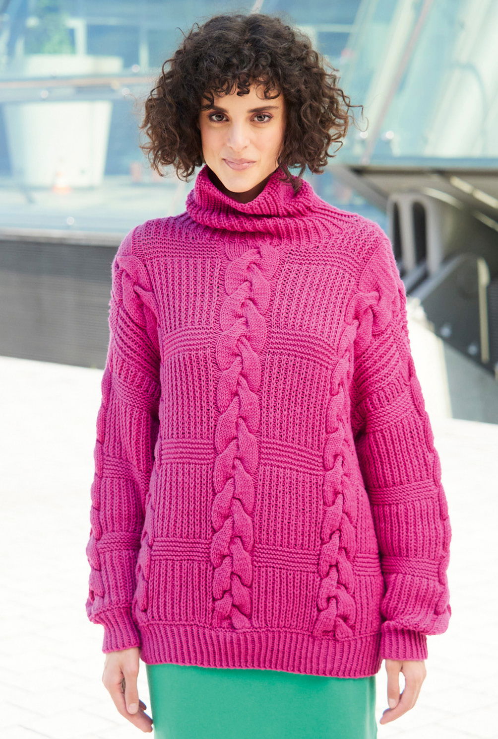 Sabrina Strickjournal Zopfmusterpulli mit Rollkragen in Fuchsia