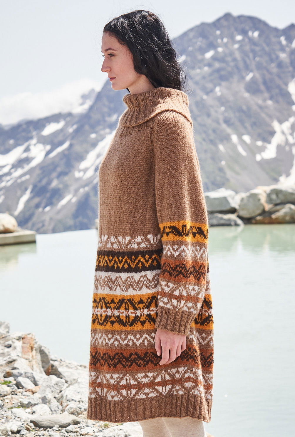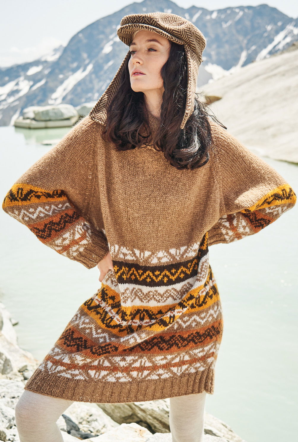 Ein Must-have für jeden Kleiderschrank! Warme Terratöne, ein lässiger Raglan-Schnitt und klassische Jacquardmuster sind die Zutaten für ein absolutes Lieblingsteil. Ganz besonders, wenn es wandlungsfähig ist: Ob mit dicken Strumpfhosen als Kleid getragen, mit schmalen Hosen als angesagter Longpulli oder auch zu Leggings im Tunika-Style kombiniert – in dem kuscheligem Teil aus feinstem Alpaka mit etwas Schurwolle und einem Hauch Polyamid sind wir immer gut angezogen und fühlen uns einfach nur wohl!