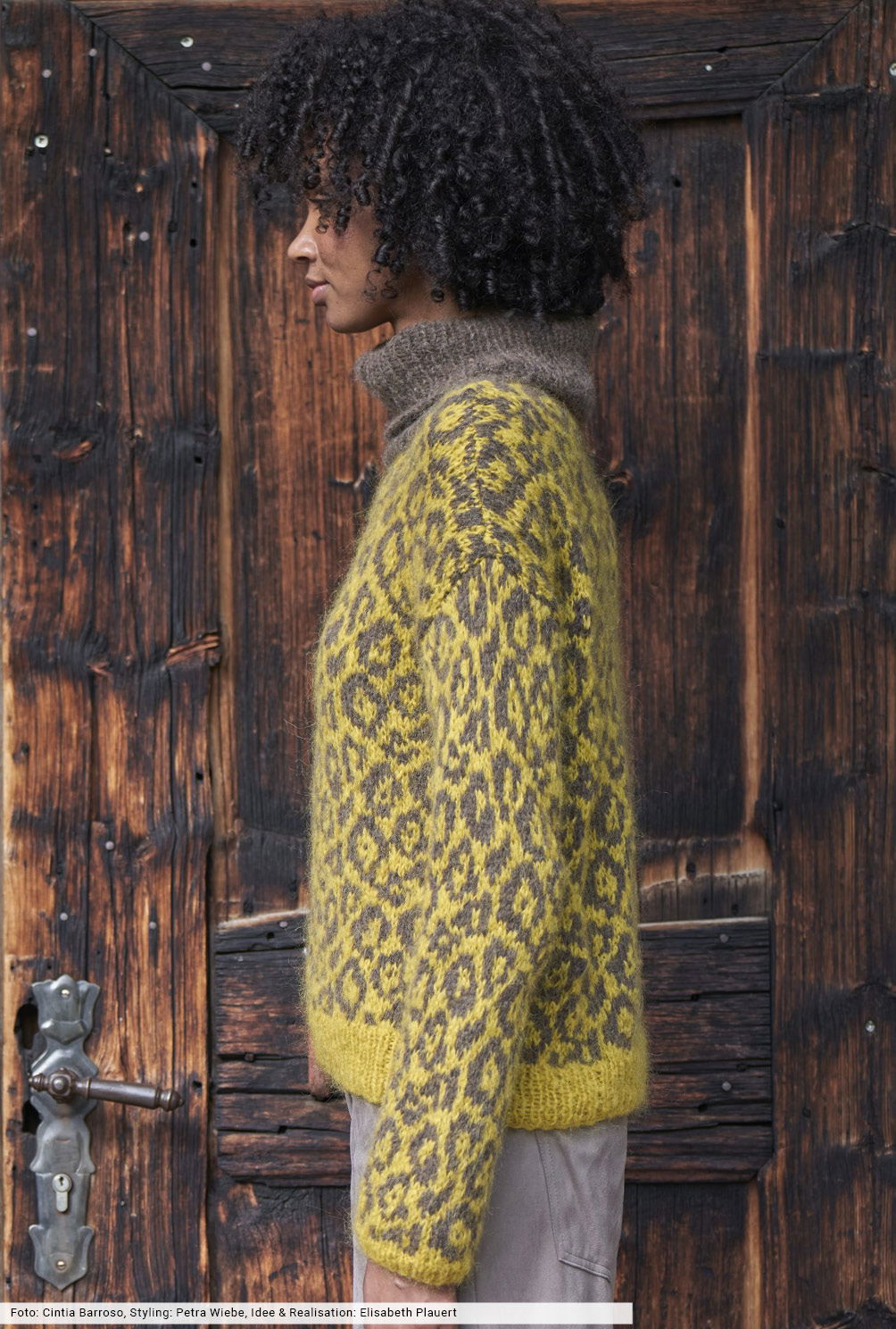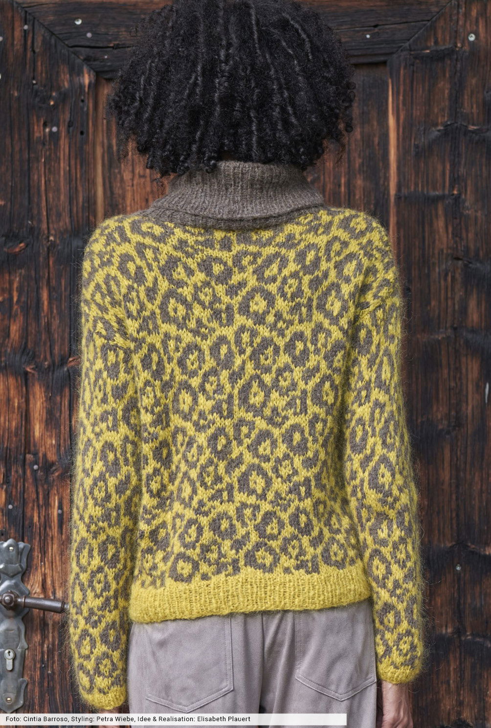 Animalisch und authentisch: Hier wird durch das Tierfellmuster ein modisches Statement geschaffen, das sich im spannenden Gelb-Braun-Mix präsentiert. Wir empfehlen für die Printoptik mit Hilfe unseres Zählmusters eine kleine Maschenprobe zu erstellen, dann geht später die Arbeit umso leichter von der Nadel. Zwei weiche Flauschgarne aus unterschieldichen Fasermischungen und der hohe Rollkragen sind komfortable Wärmegaranten an kalten Tagen.