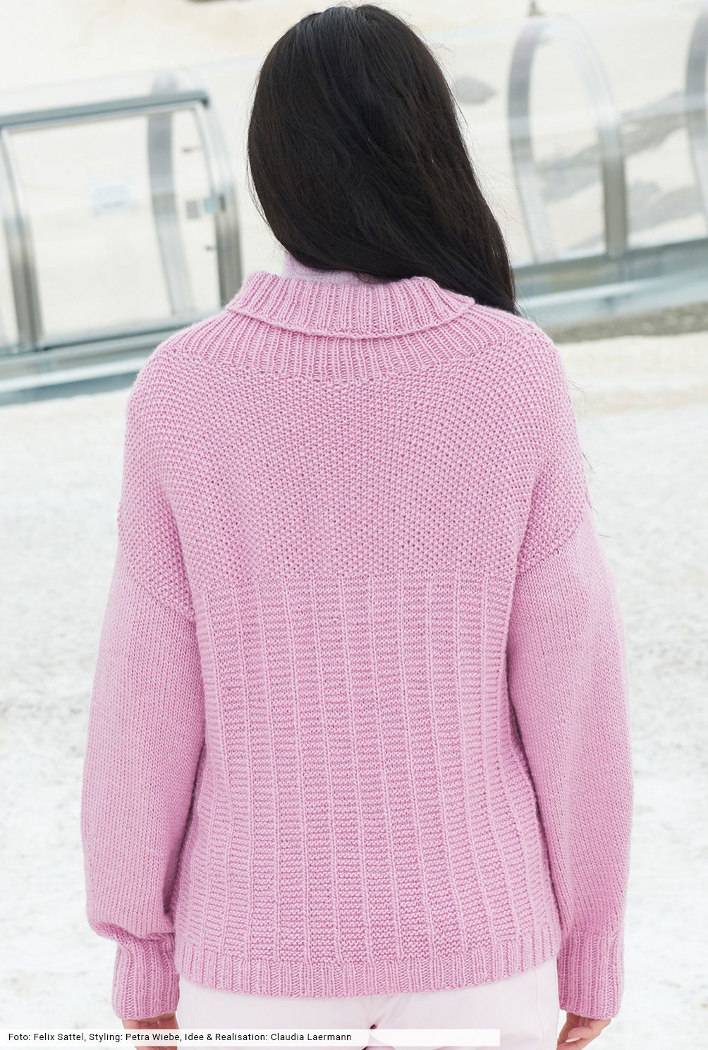 Anfängerleicht, aber trotzdem sehr apart: Bei diesem Pulli sind es einfache Strukturen aus rechten und linken Maschen, die sich stilvoll in Szene setzen. Gestrickt wird aus einem hochwertigen Mischgarn, das sich aus Schurwolle und Seide zusammensetzt – eine Kombination, die in zartem Rosé besonders apart zur Geltung kommt. Die Ärmelschrägungen haben wir gleich nach dem Bund ganz raffiniert platziert – nämlich sichtbar in der Ärmelmitte.
