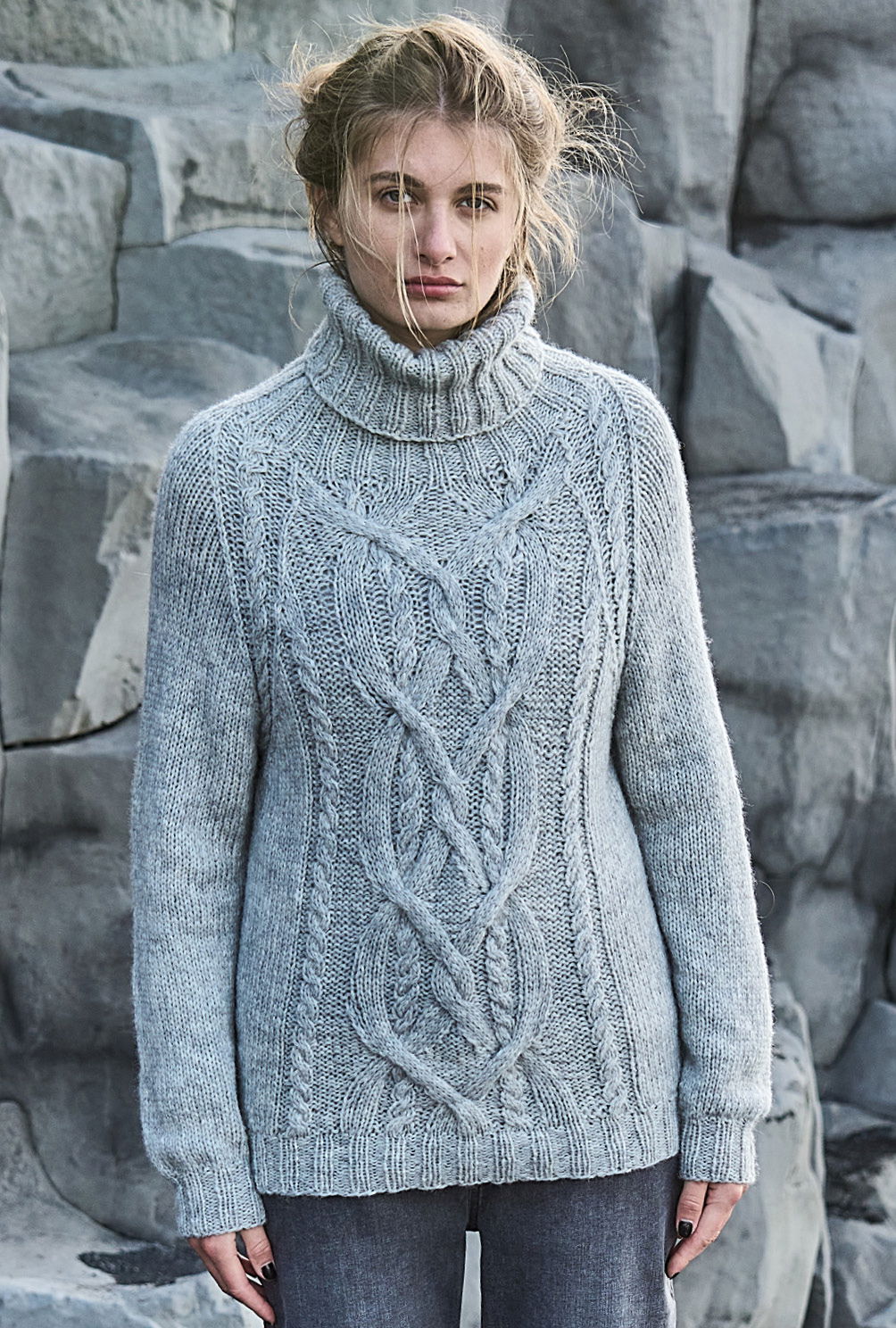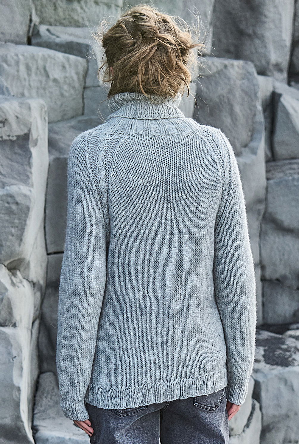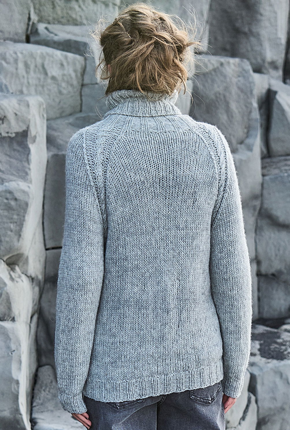 Alles, was den Charme von Handstrick versprüht, wird jetzt neu aufgelegt. Bei diesem Rollkragenpulli mit elastischen Rippenbündchen ist es ein markanter Mittelzopf, den du nach einer übersichtlichen Strickschrift nacharbeiten kannst. Er wird von schmalen Zöpfen und ruhigen Glatt-rechts-Partien eingerahmt. Das Non-Plus-Ultra bildet jedoch die Raglanpasse, die in Runden an einem Stück genadelt wird und mit einem hohen Rollkragen endet – perfekt für kältere Herbsttage.