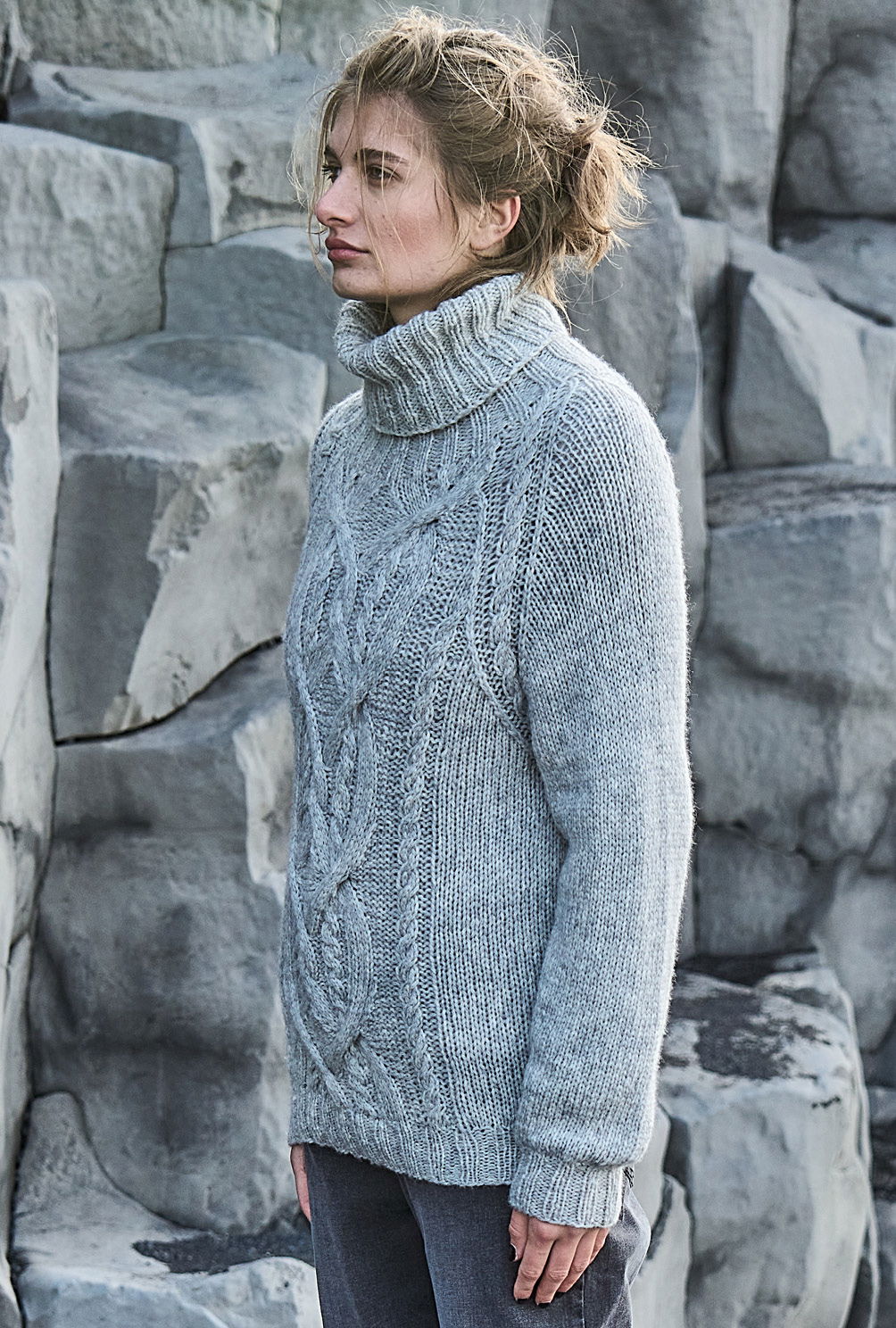Verena Stricktrends Rollkragenpulli in Grau mit Mittelzopf