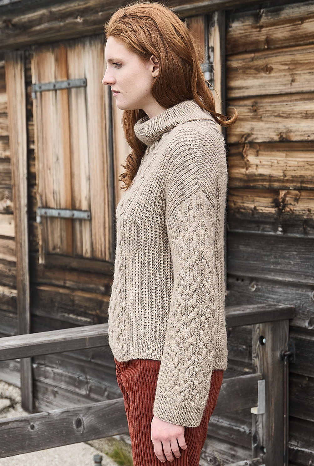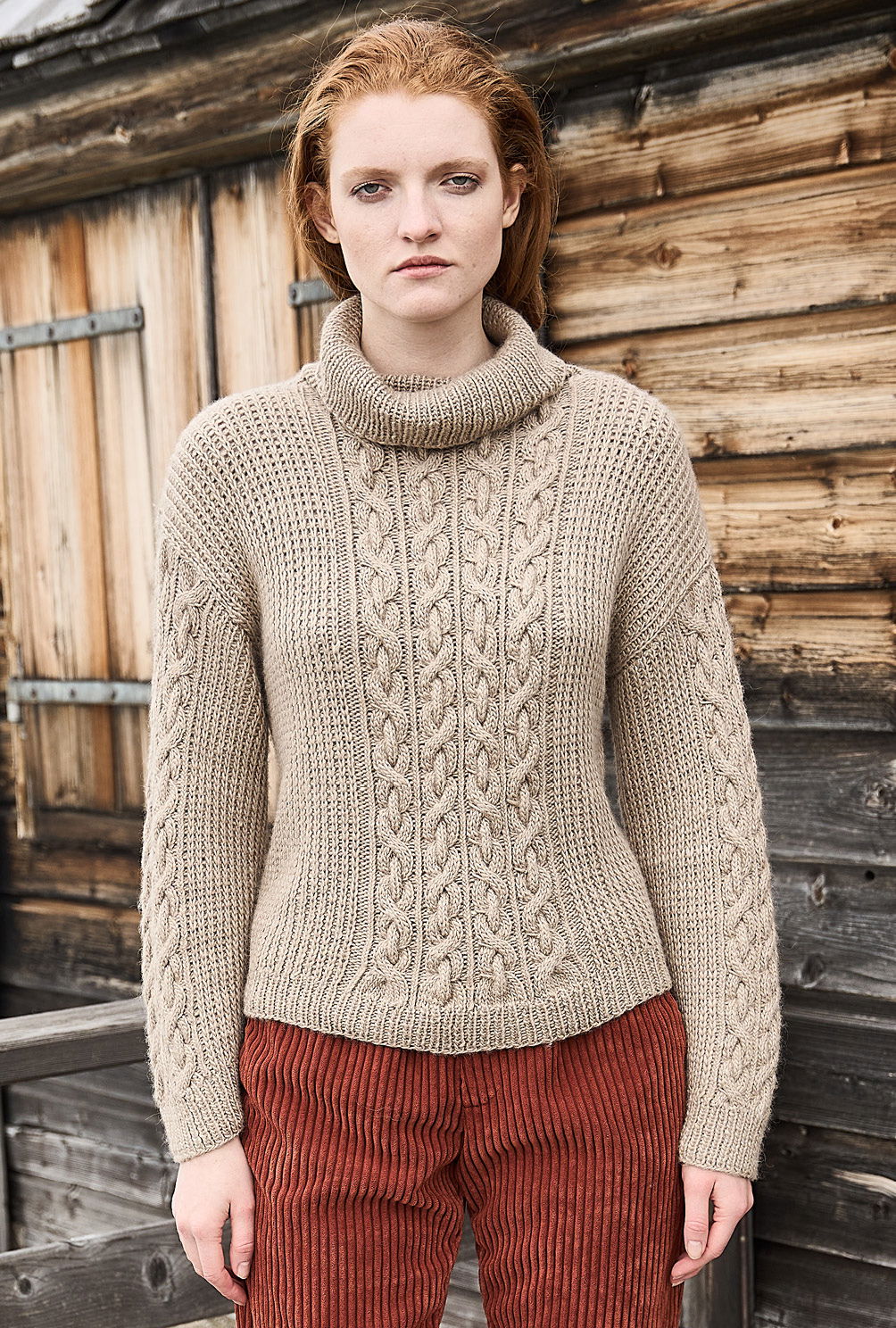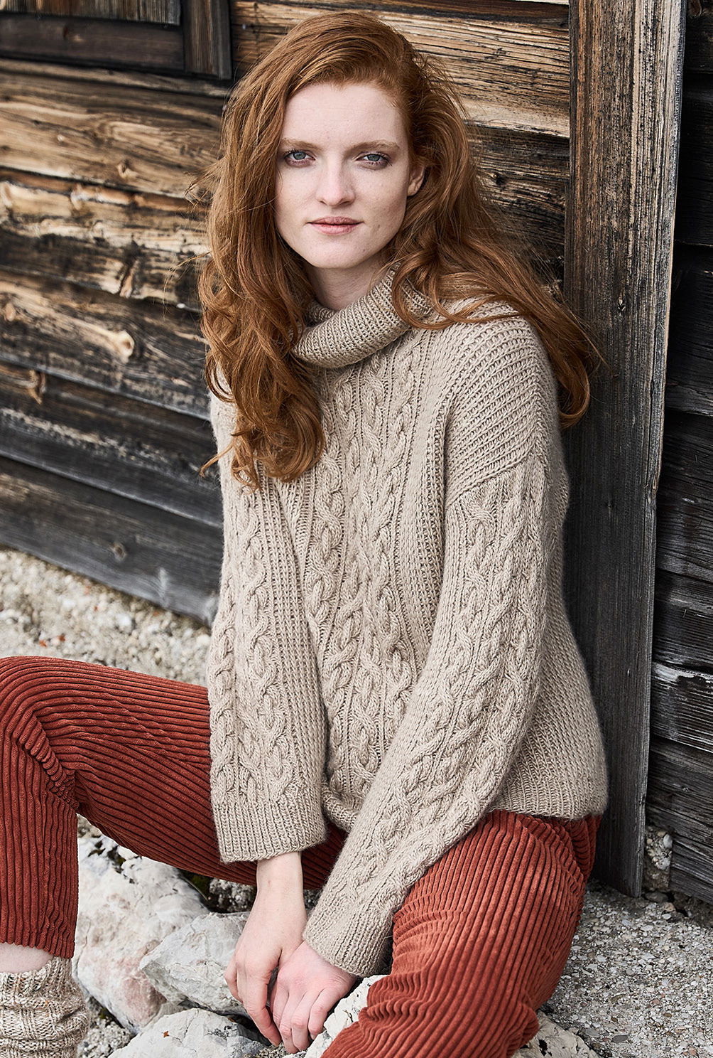 Material: 800 (800) 900 g Khaki (Fb 66) "Moonshine" (40% Schurwolle, 40% Alpaka, 20% Seide, LL = 180 m/100 g) von JUNIPER MOON. 1 Paar Stricknadel Nr 5 sowie 1 Rundstricknadel Nr 5.