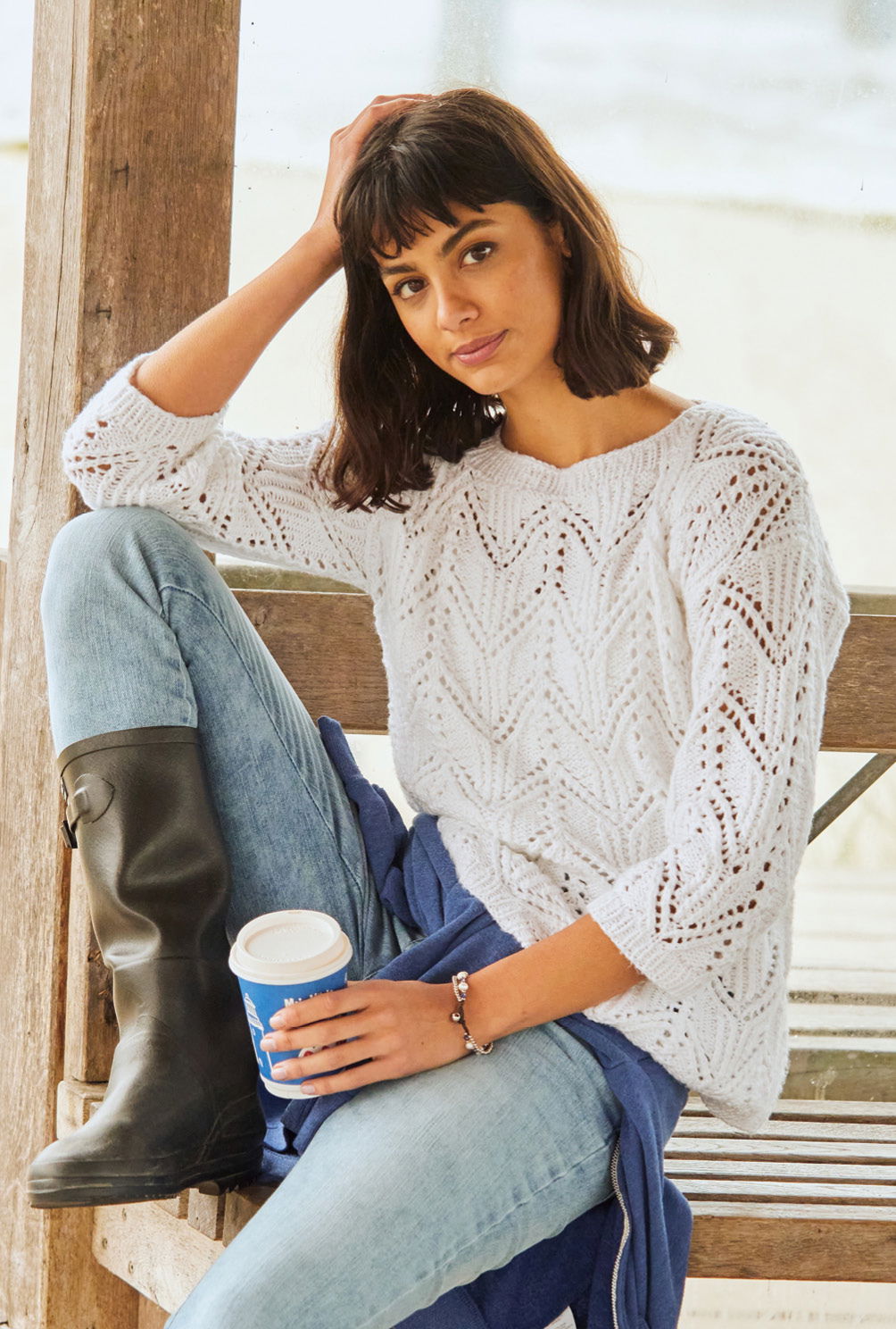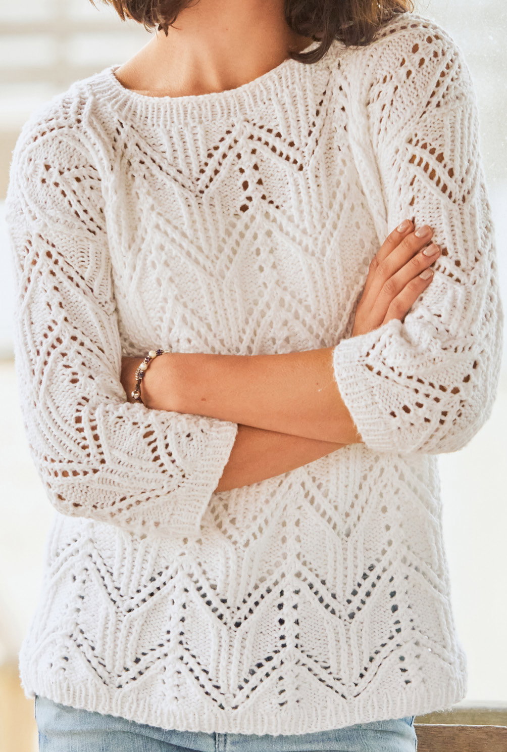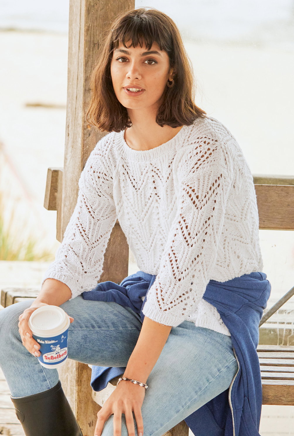 Tipp: Zumindest bei den Ärmeln lohnt es sich, Maschenmarkierer zwischen die Mustersätze zu hängen. So hast du bei den geforderten Zunahmen besser im Blick, dass sich Umschläge und zusammen gestrickte Maschen auch ausgleichen.