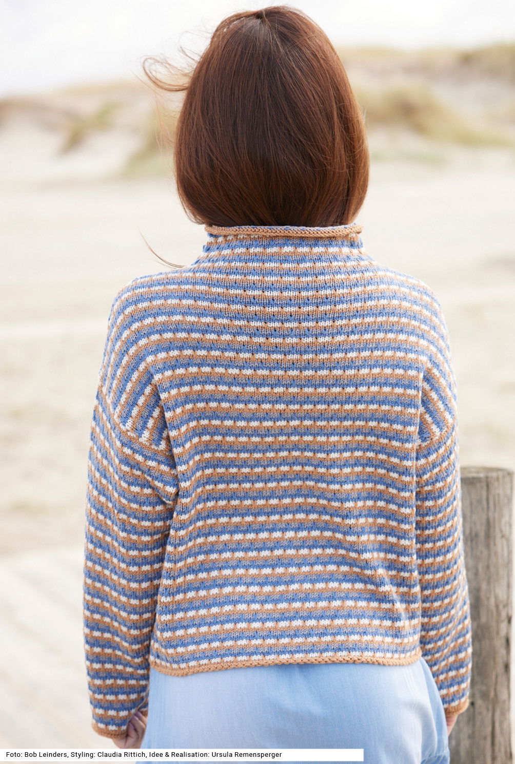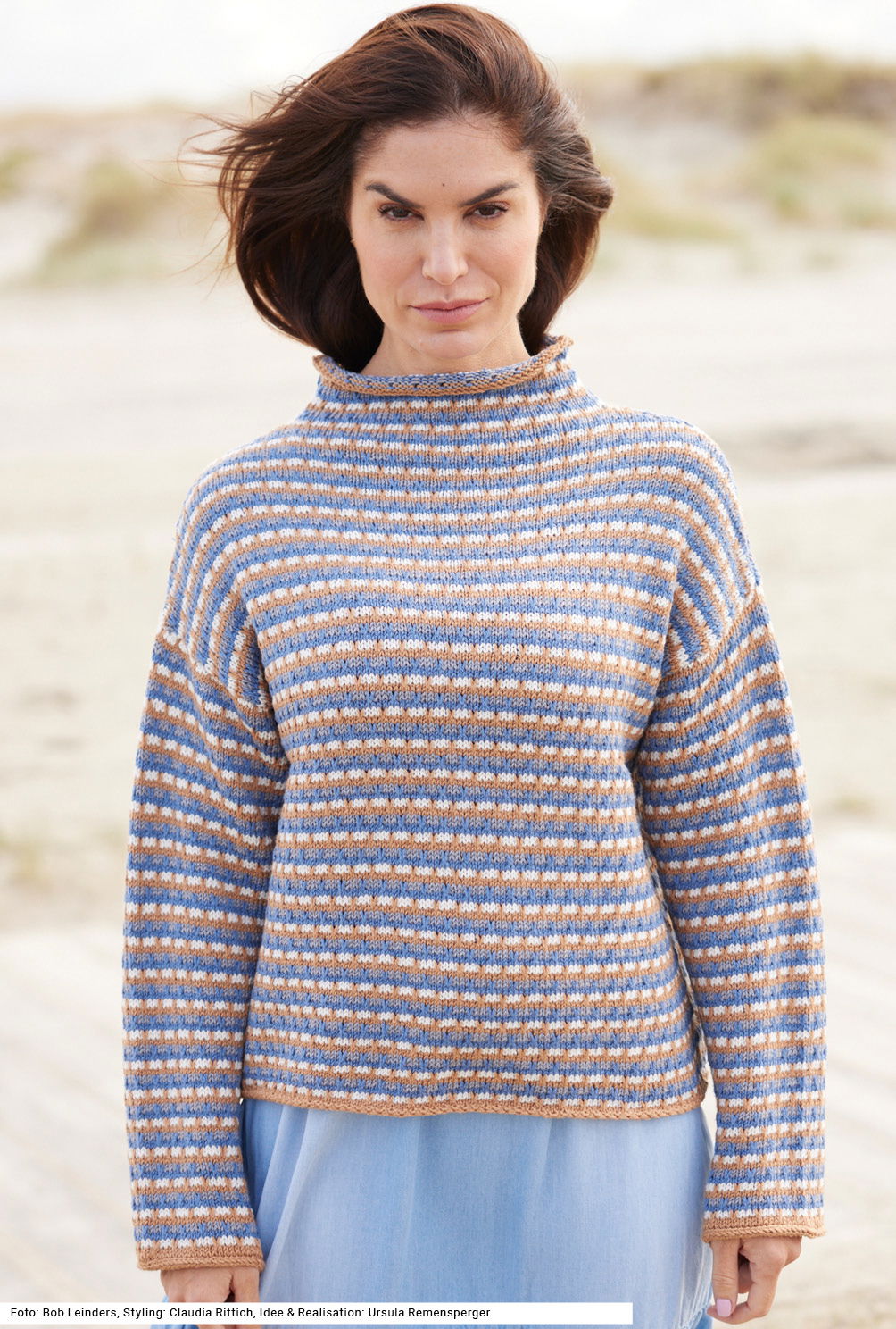 Muster aus Hebemaschen sind die ideale Technik, um verschiedene Farben schnell und easy zu verstricken. So macht auch dieser Pullover kein großes Aufhebens, sondern ist rundum ebenso unkompliziert wie wirkungsvoll. Die gelungene Farbkombination und der wärmende Stehkragen machen den Pulli zu einem willkommenen Stylingpartner unserer Herbstgarderobe: Ob zur Jeans oder dem sanft fließendem Satinrock – dieses Multitalent passt zu allem! Das vierfarbige Hebemaschen-Muster sorgt für Abwechslung und Strickvergnügen, der Stehkragen schützt vor Wind und Wetter. Praktisch: Vorder- und Rückenteil sind gleich, was auch das Schließen der Nähte vereinfacht.