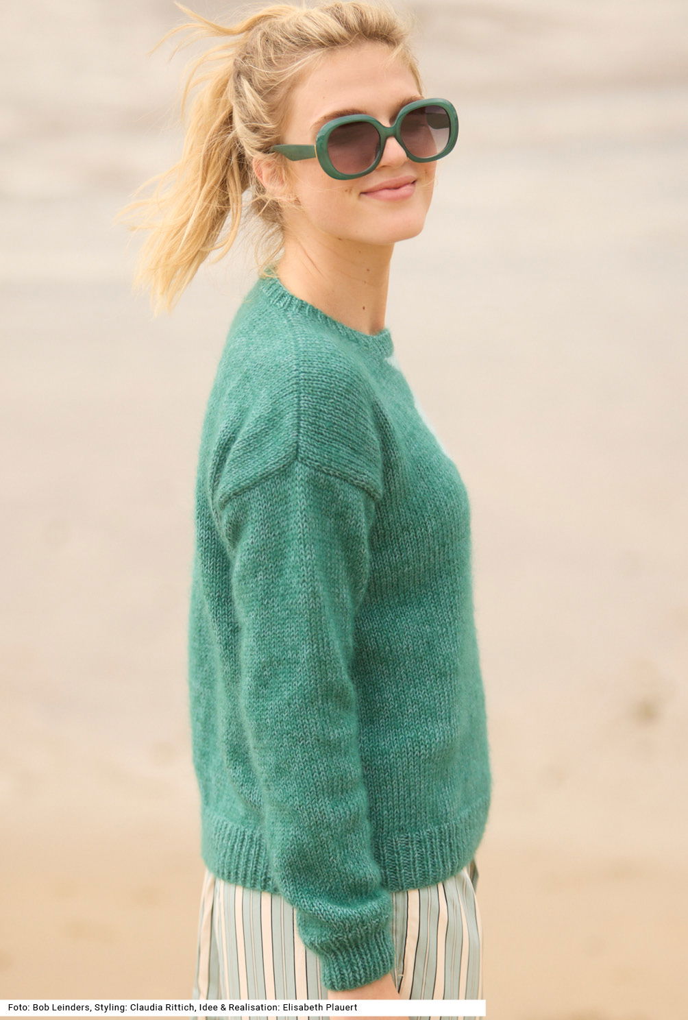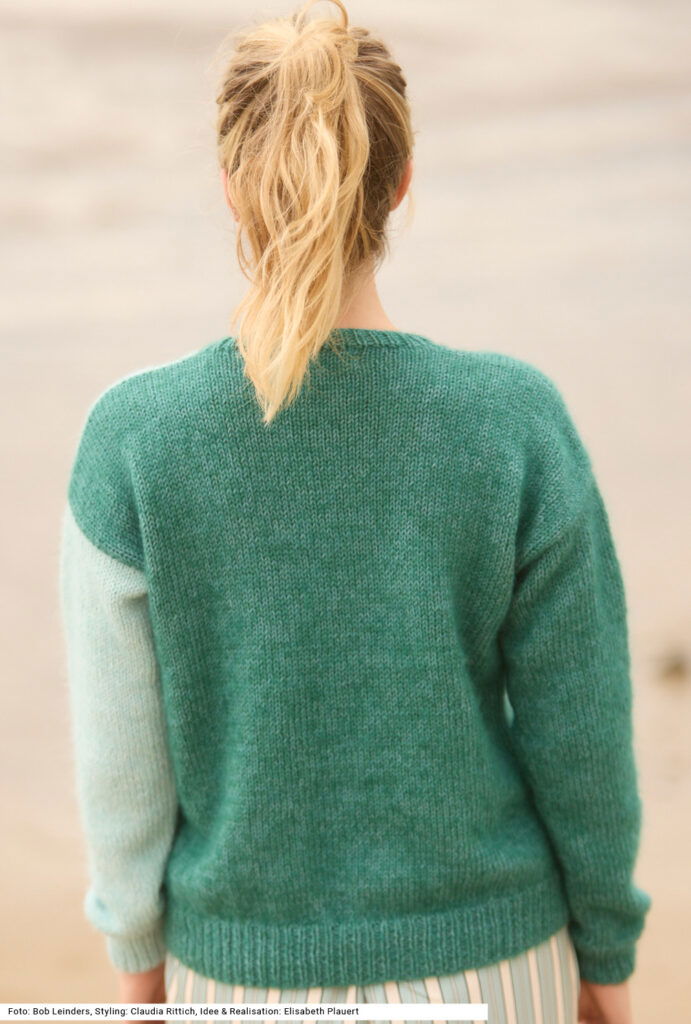 Der Pulli mit einer großformatigen Blume in Intarsientechnik sorgt für frischen Wind in Ihrer Garderobe – der florale Look lässt schon erste Frühlingsgefühle aufkommen. Das Modell wird zweifädig gearbeitet, wobei ein reines Merinogarn zusammen mit einem feinen Lacegarn aus Mohair und Seide verstrickt wird – das erzeugt eine melierte Optik mit flauschiger Oberfläche. Zum Schluss bekommt die Blume noch Staubgefäße und mit Stiel- und Plattstichen sowie einen Stängel mit Maschenstichen aufgestickt. Die Anleitung kann für die Größen 36/38, 40/42 und 44/46 downgeloadet werden.