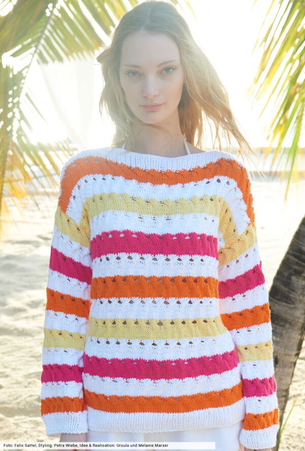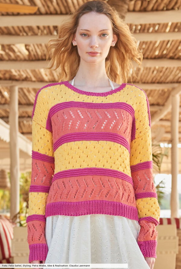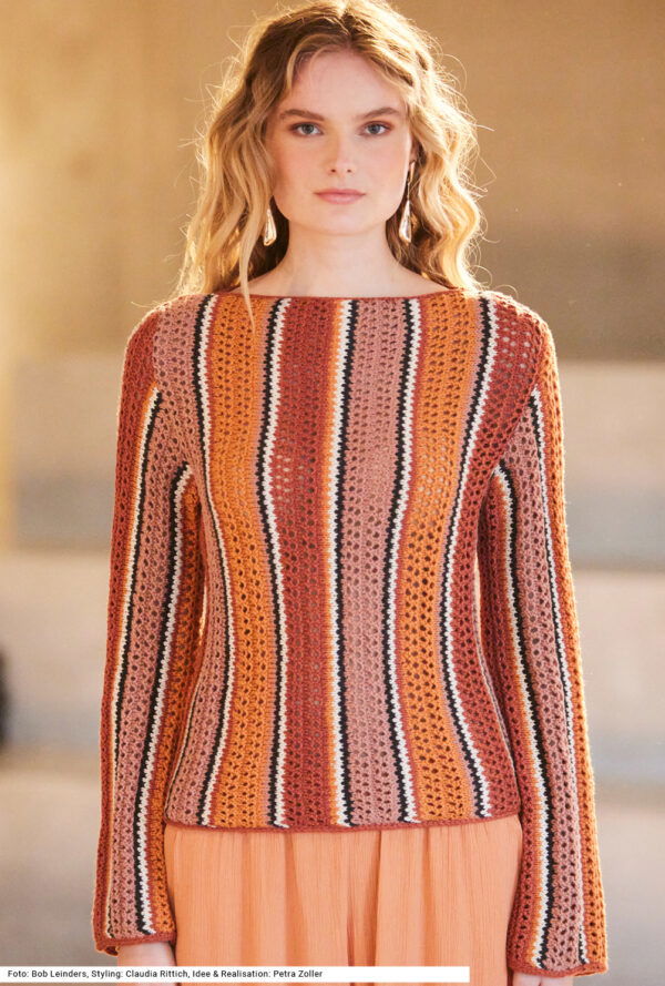 Gestreifter Ajourmusterpulli