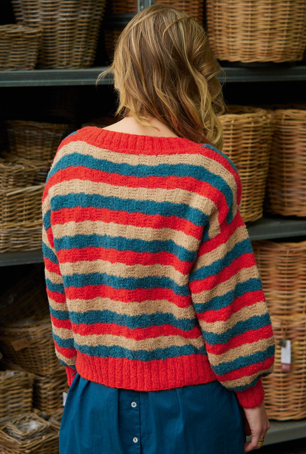 Dieser schlichte Pullover mit geradem Schnitt und rundem Ausschnitt besticht durch die Mischung aus kontrastreichen Streifen und filigranem Flechtmuster. Dadurch erhält dieses Modell eine Lässigkeit, die in jeder Lebensituation besonders zur Geltung kommt. Sowohl Schnitt als auch Muster sind einfach nachzuarbeiten und eigenen sich daher auch für Anfänger. Die genaue Beschreibung der Arbeitschritte, der detaillierte Schnitt und die gut nachvollziehbare Strickschrift helfen dir auf dem Weg zu deinem Traumpullover. Das Modell kann in der Größe 36/38, 40/42 und 44/46 gestrickt werden. Das Garn gibt es bei BUTTINETTE und verwendet wurde hier die Nadelstärke 3,5 und 4.