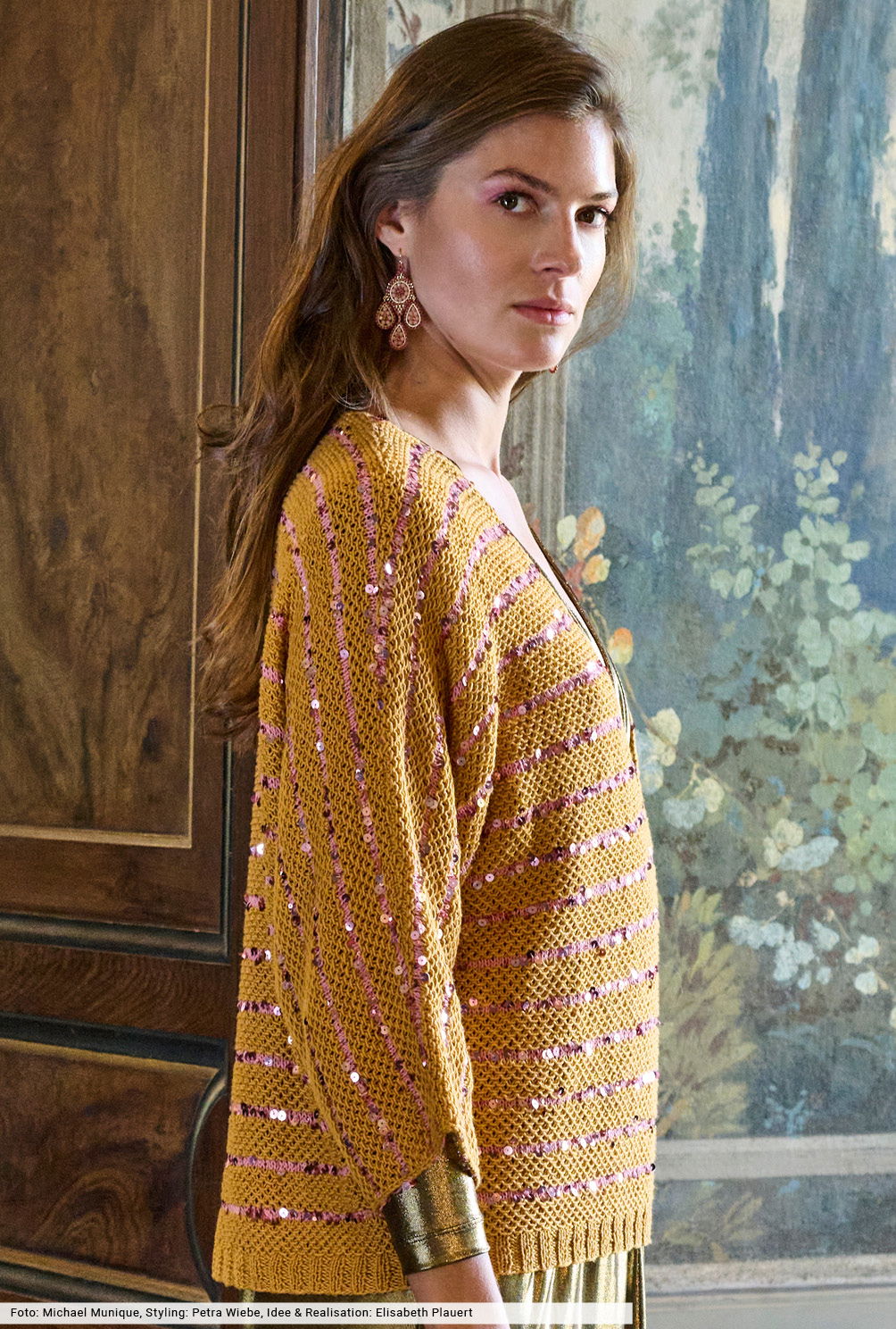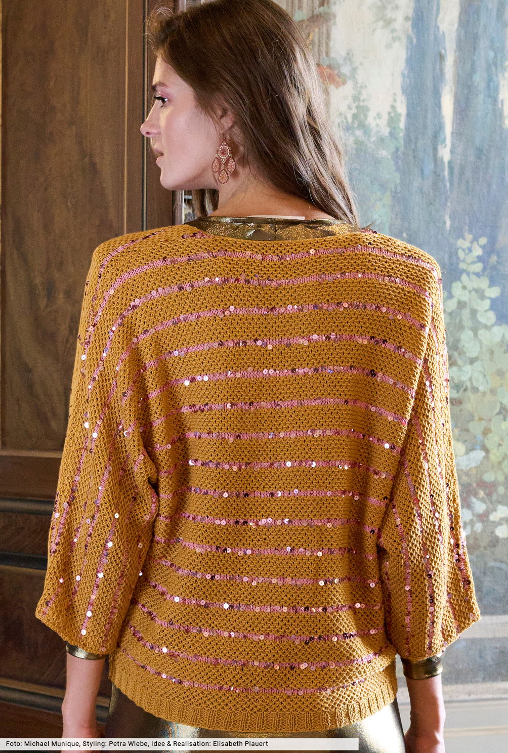 Strick darf jetzt funkeln! Bei diesem Pulli mit angestrickten Ärmeln sind es schmale Ringel aus Paillettengarn, die den breiten Hebemaschen-Streifen aus dezent schmimmernder Baumwoll-Viskose den subtilen Glanz verleihen. Der warme Farbmix in Curry und Altrosa wirkt modern, gleichzeitig geerdet und wunderbar tragbar. Fazit: ein perfekter Begleiter für die ersten Frühlingstage sowohl für abends als auch für den Tag.