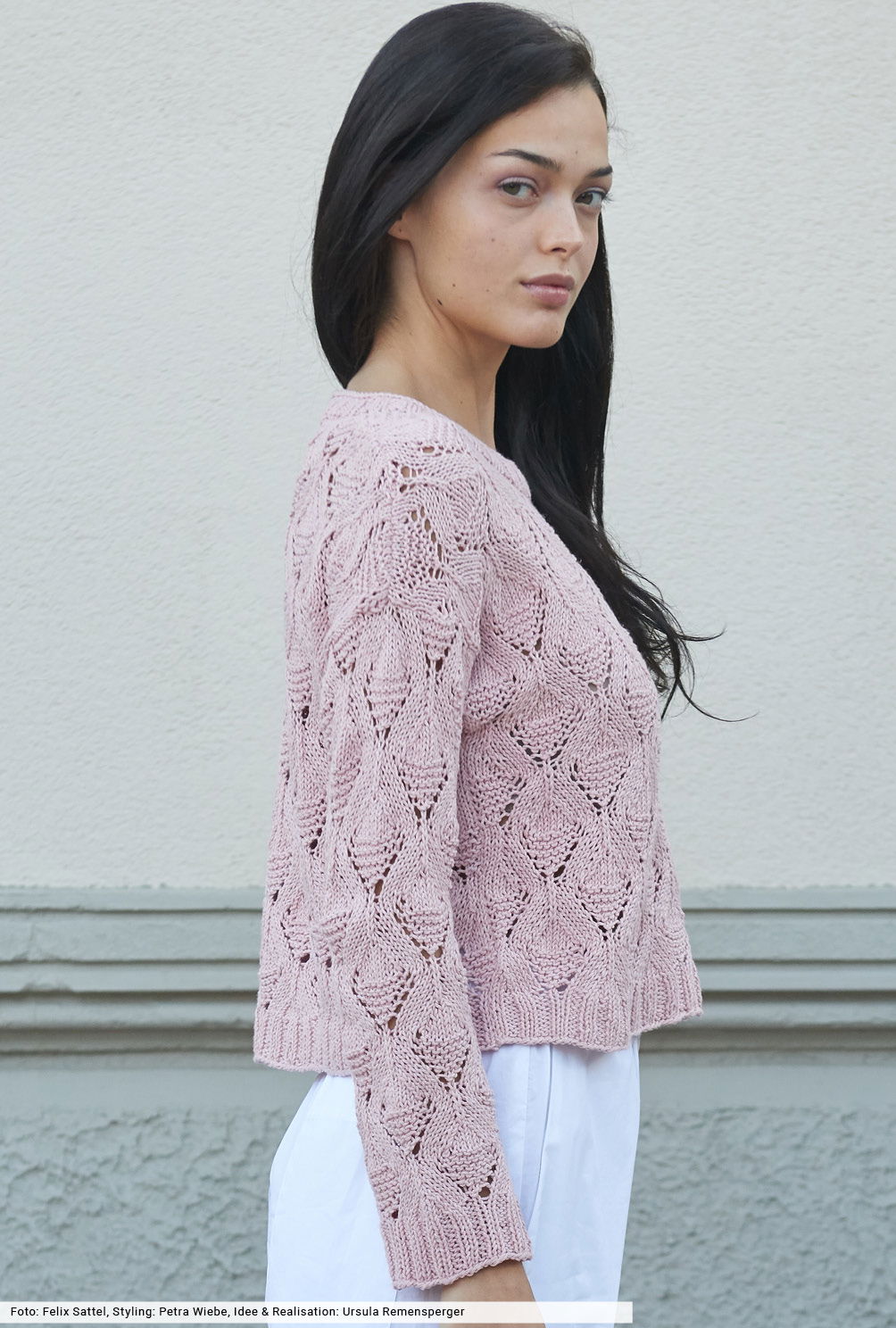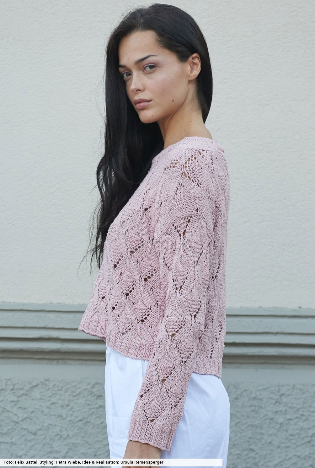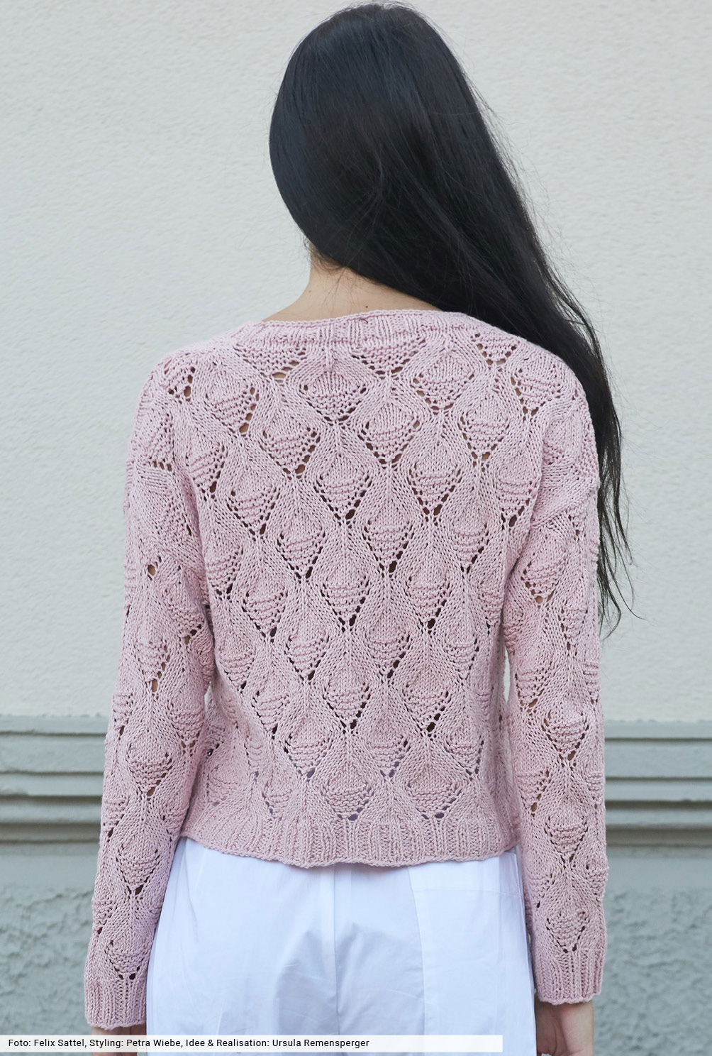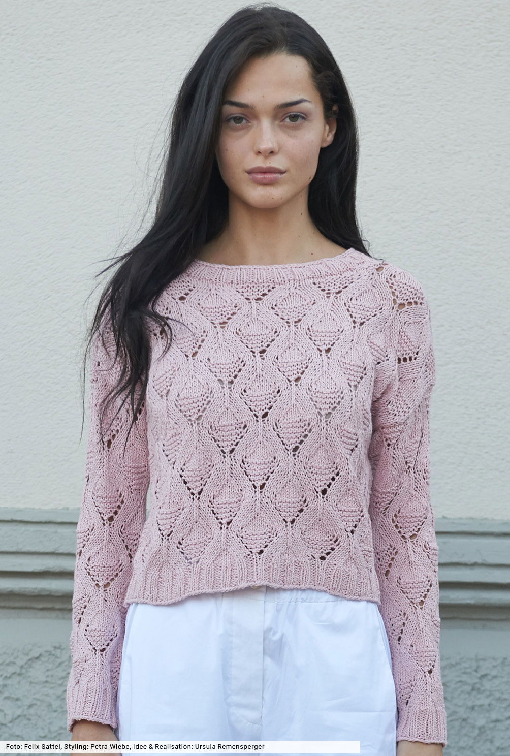Du willst von unwiderstehlichen Mustern und weichen Garnen verführt werden? Dann wage einen Blick auf diesen Pulli in sanftem Altrosa. Er hat diesen lässigen Oversize-Schnitt, den wir so mögen, und perfekt ausgearbeitete Schulterschrägungen, die den perfekten Sitz garantieren. Das Ajourmuster zeigt sich in gleichmäßigen Rauten und ist durch eine übersichtliche Strickschrift dargestellt. Das Garn aus Baumwolle mit Leinen verspricht angenehmen Tragekomfort auch an heißen Tagen.