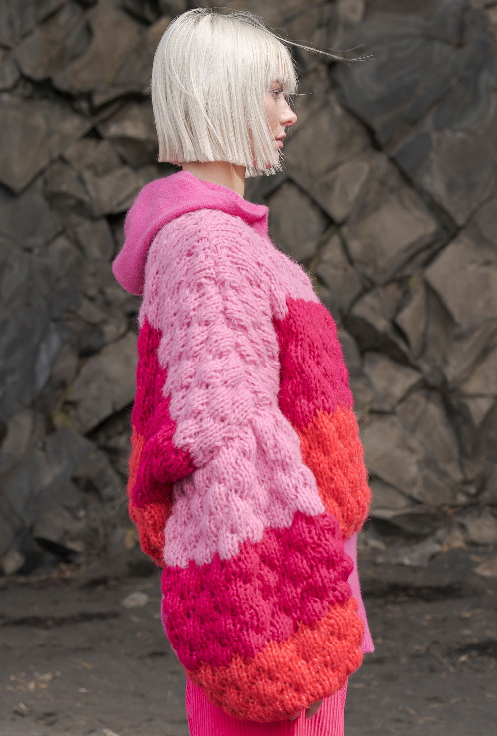 Verena Stricktrends Dreifarbiger Pulli mit Keulenärmeln