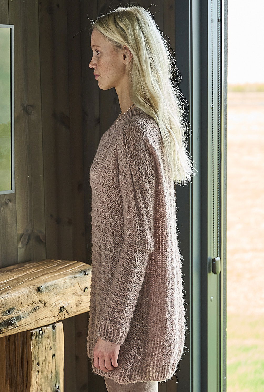 Altrosa, Beige und Taupe werden bei dem gemütlichen Longpulli zusammen verstrickt und lassen den dezenten Melange-Effekt entstehen. Das schlichte, leicht strukturierte Grundmuster sorgt für die spannende Optik, die mit Nadel 8 ganz schnell und easy von der Hand geht. Die elastischen Rippenbündchen entstehen mit dünnerer Nadel, sodass die Formstabilität gewährleistet ist. Dies gilt auch für die V-Ausschnittblende, die zum Schluss zur Hälfte nach innen umgeschlagen und angenäht wird.