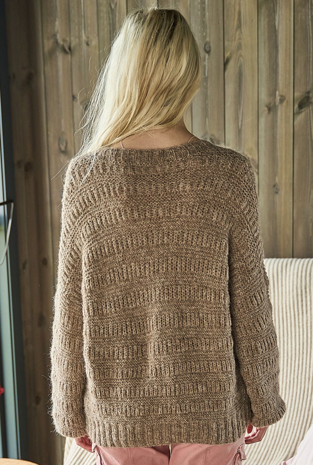 Patentmuster gehören zu einem der beliebtesten Looks in Handstrick. Bei diesem Pulli werden die Längsrippen mit Querstreifen aus kraus rechts kombiniert – eine ausdrucksstarke Kombination, bei der nach etwas Übung auch Strickeinsteiger zum Erfolg kommen. Elastische Rippenbündchen und die Blende am tiefen V-Ausschnitt bringen alles schön in Form und geben den weiten Ärmeln die angesagte Keulenform. Besonders leicht und weich ist das Garn: Ungefärbtes Alpaka, das mit Synthetikfasern angereichert wurde. Tipp: Von Hand waschen – so hast Du besonders lange etwas von diesem aparten Strickstück.
