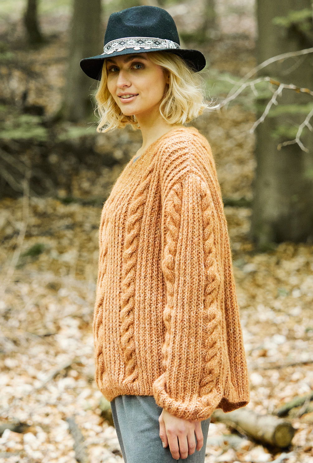 Dieser unglaublich schöne und kuschlige Pullover ist einfach perfekt für die etwas kühleren Herbsttage geeignet. Das ockerfarbene Schurwolle-Mischgarn verleiht diesem coolen, weit geschnittenem Pullover mit seinem ansprechenden Zopfmuster genau das gewisse Etwas. Dieser Pullover besticht durch eine gerade Schnittführung, die dazu führt, dass die Schultern leicht überfallend sind. Dieses Design wird durch das breite Zopfmuster in der vorderen und hinteren Mitte sowie das dazwischen gearbeitete Patentmuster noch weiter aufgewertet, was dem gesamten Modell einen charmanten und rustikalen Look verleiht. Die Anleitung für diesen Pullover ist in den Größen 38/40 und 44/46 verfügbar, sodass jeder die Möglichkeit hat, dieses einzigartige Strickstück zu gestalten.