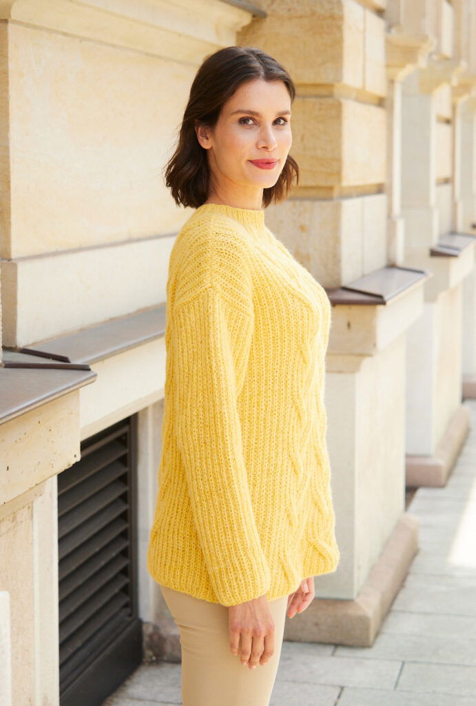 Sabrina Strickjournal Gelber Pullover mit Zopf-Patentmuster
