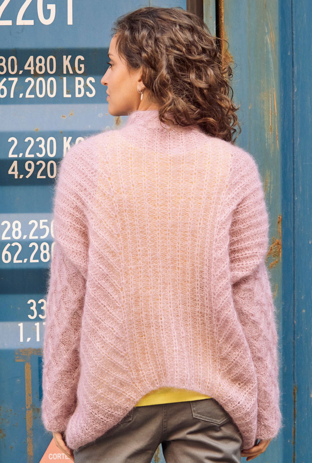 Sabrina Strickjournal Mohairpulli mit Zopfelsaum in Rosa