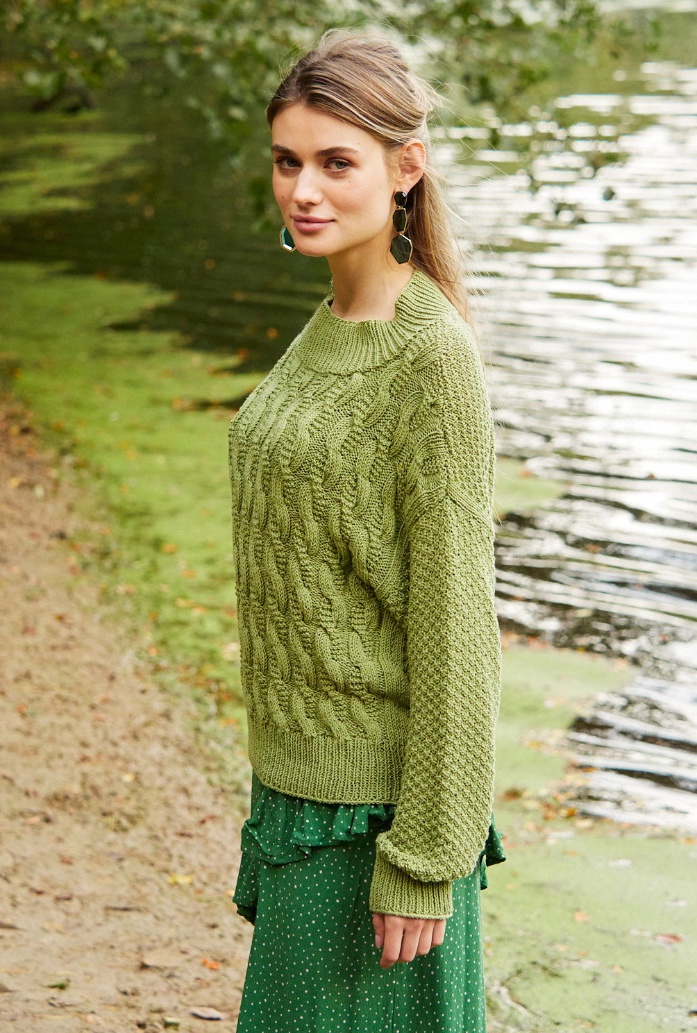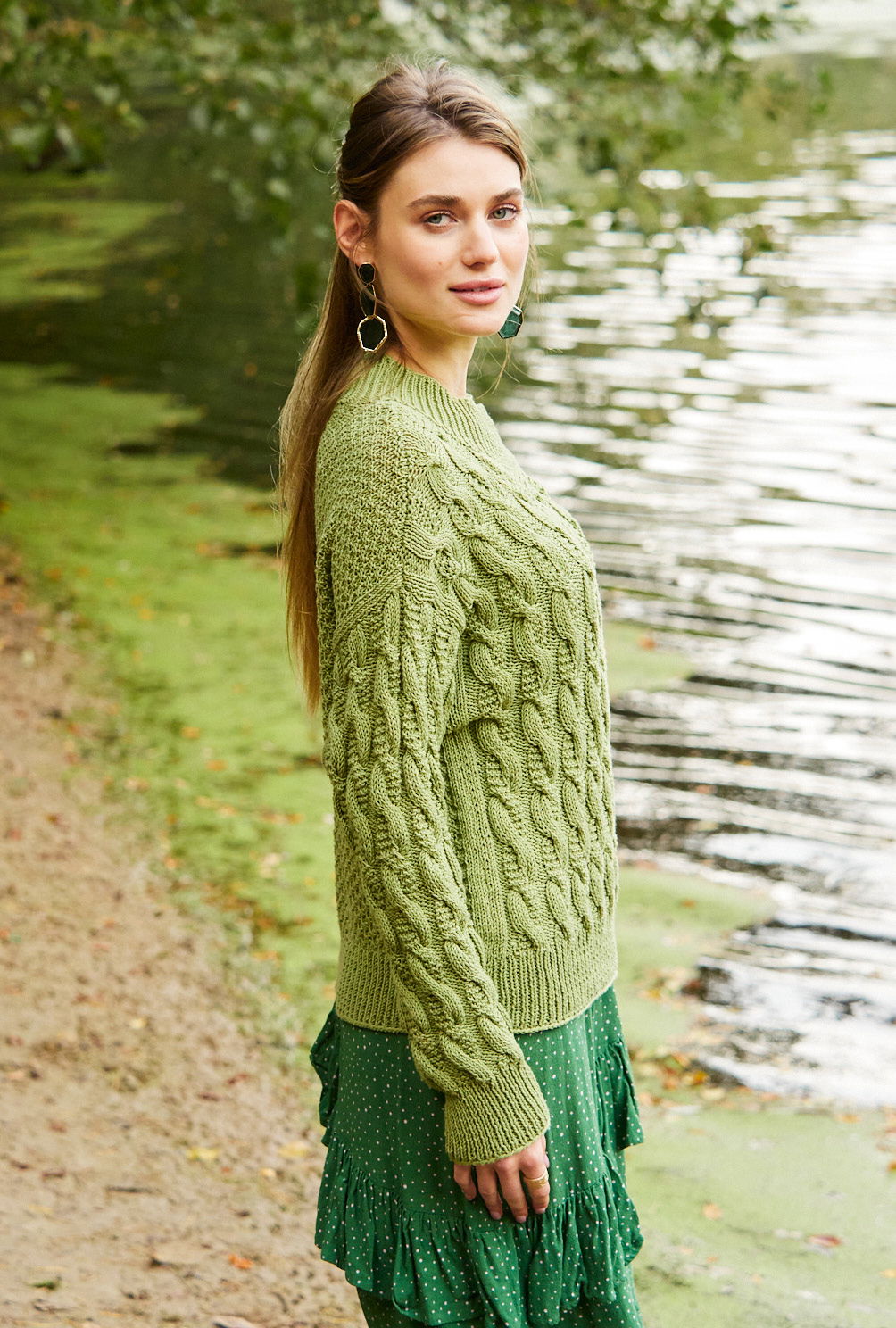 Sabrina Strickjournal Moosgrüner Pulli mit Zopf- und Schachbrettmuster