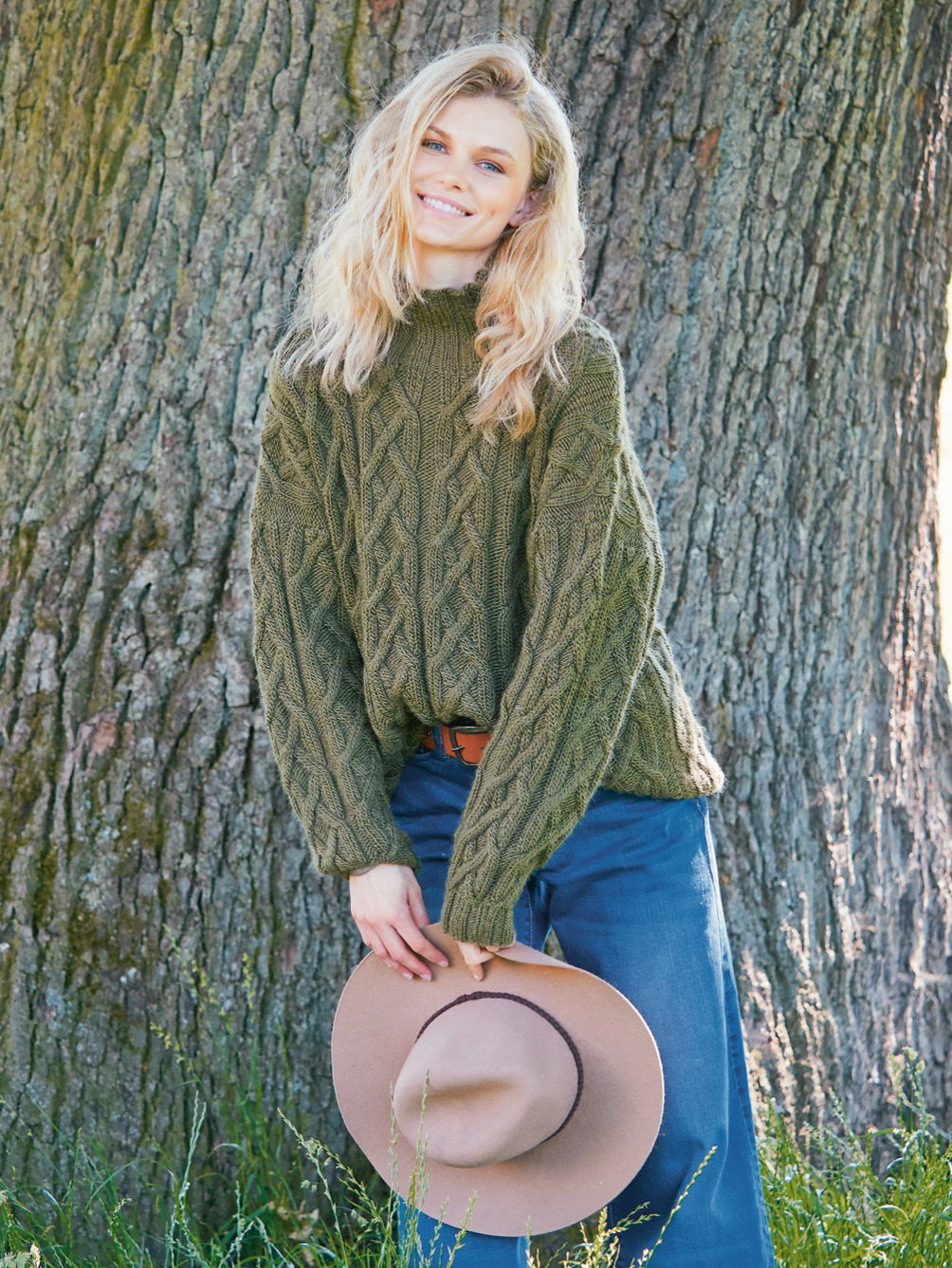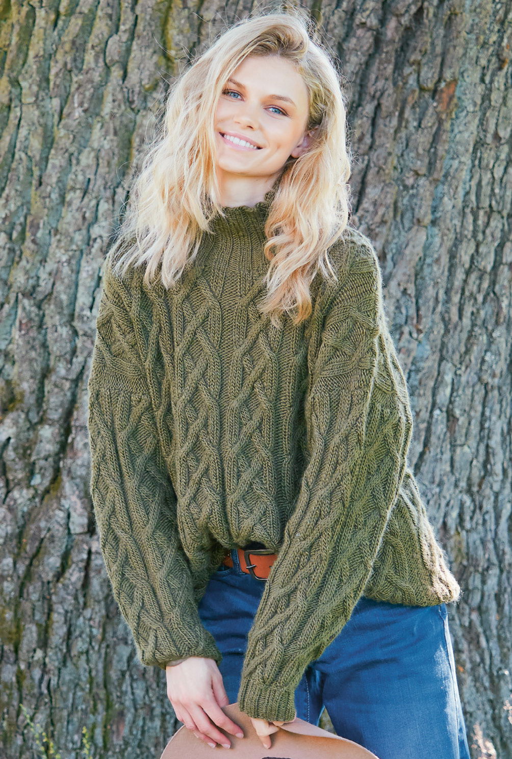 Sabrina Strickjournal Olivgrüner Zopfmusterpulli