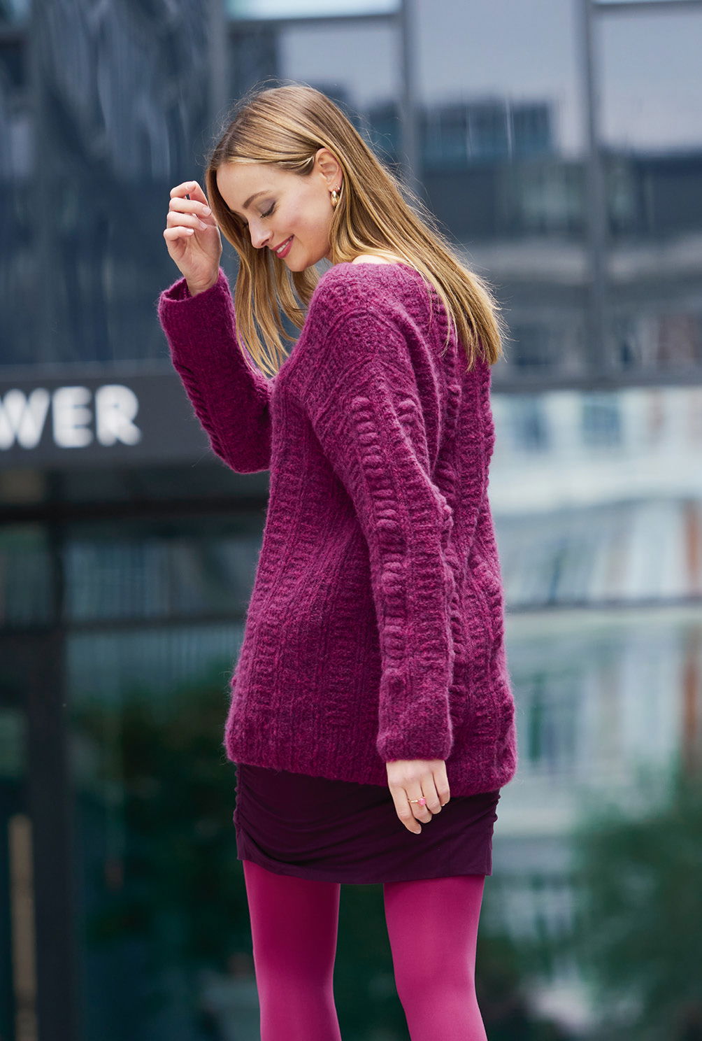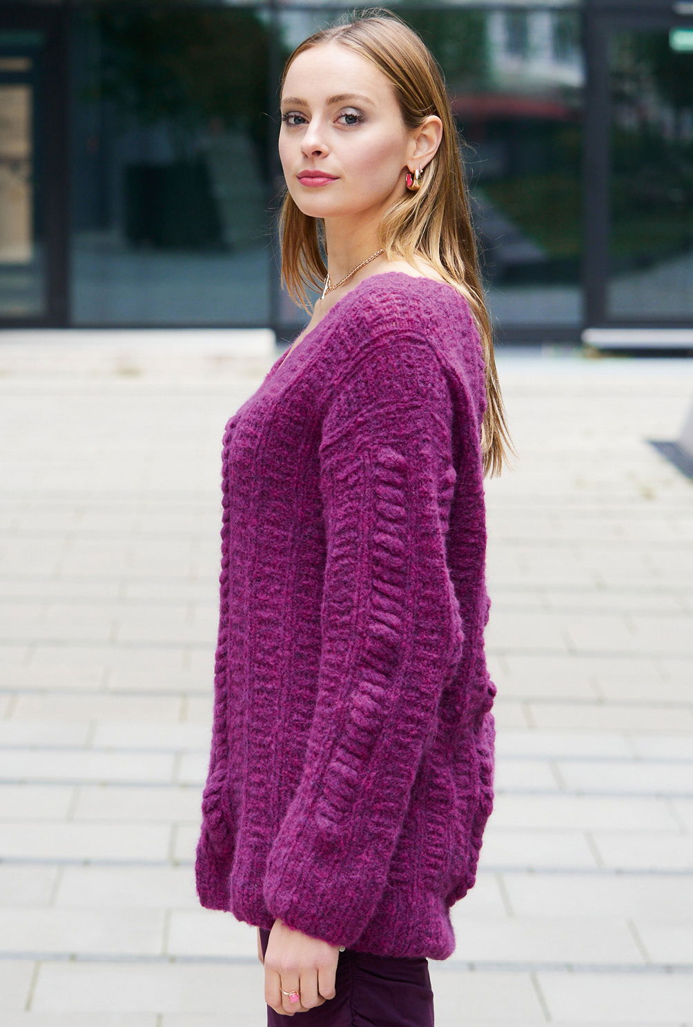 Sabrina Strickjournal Pflaumenfarbener Pulli mit V-Ausschnitt