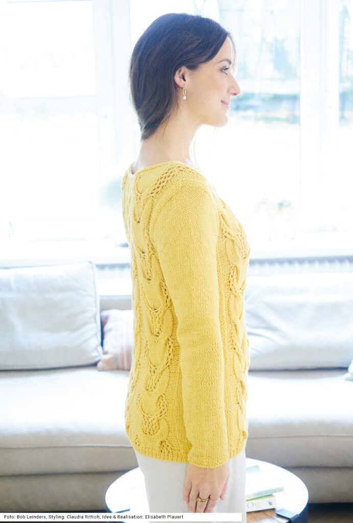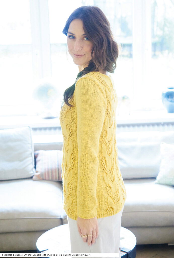 Sabrina Strickjournal Pulli mit Ajourzopfmuster in Gelb