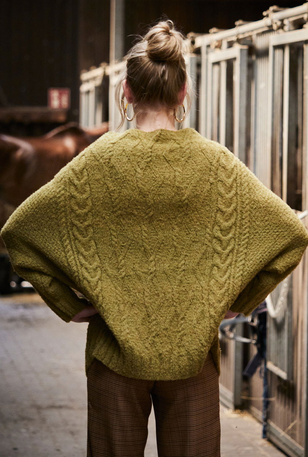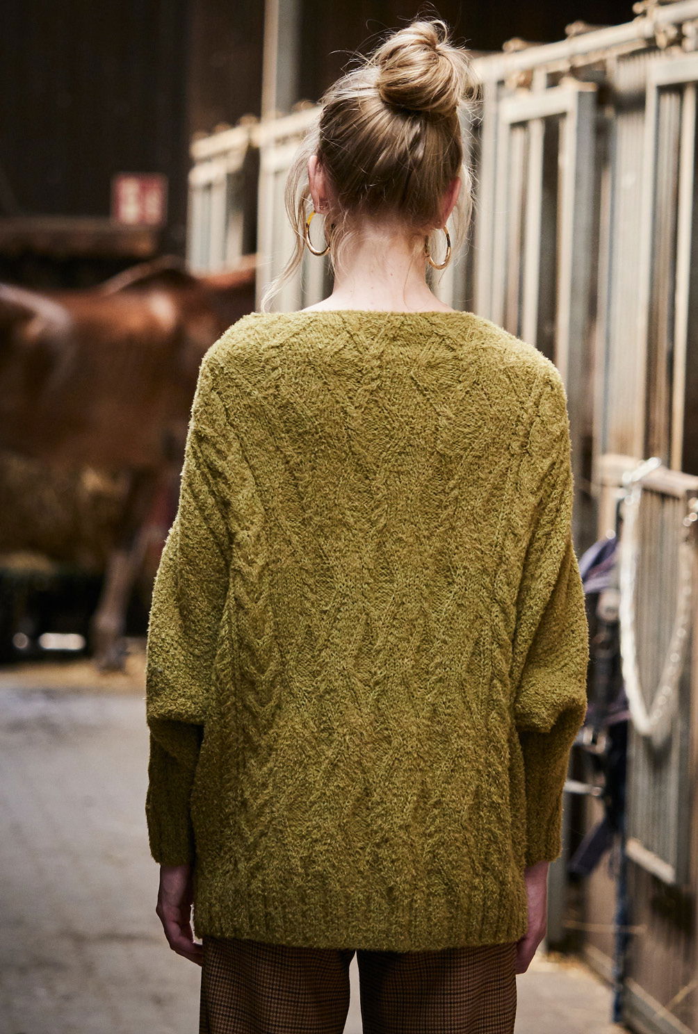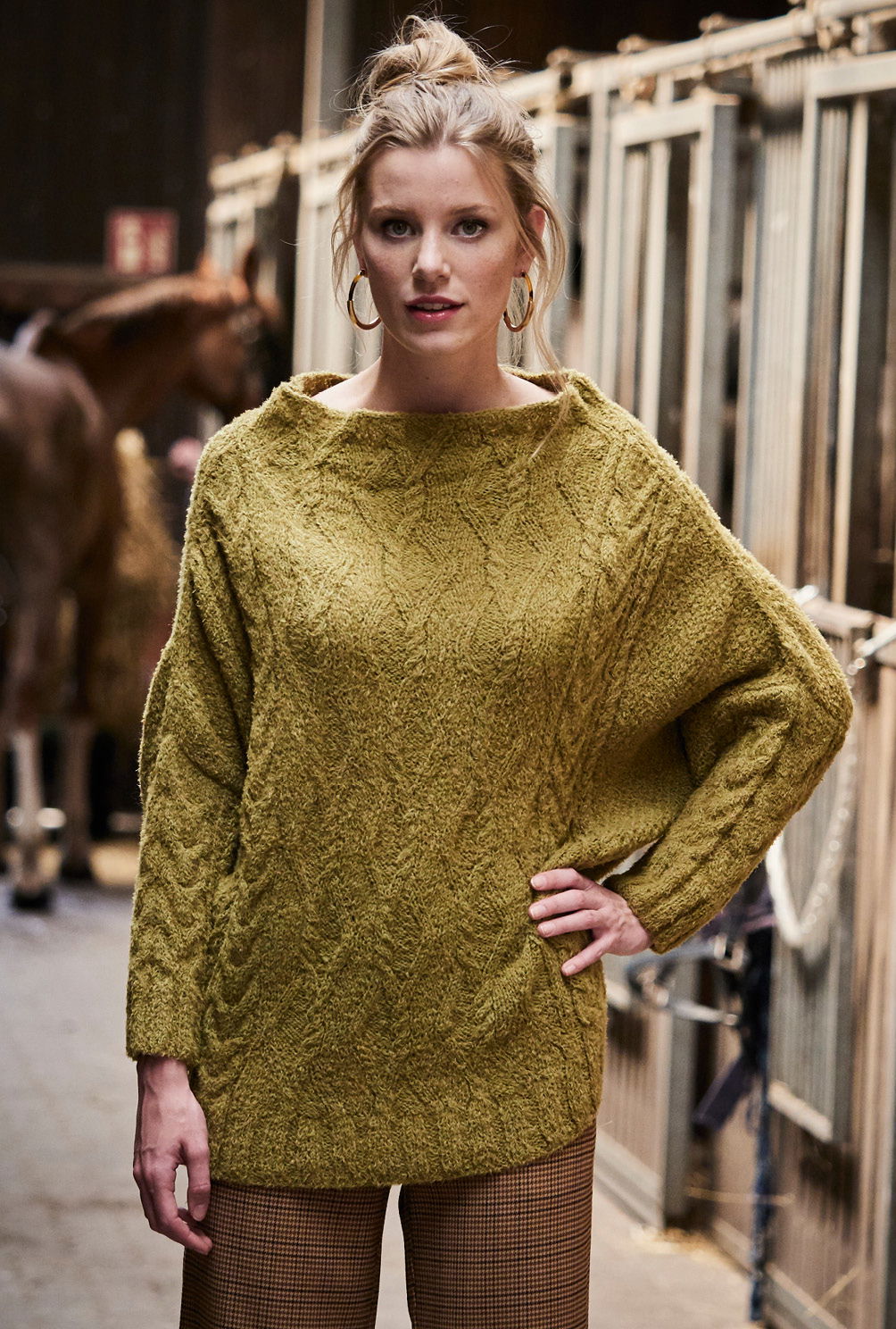 Sabrina Strickjournal Pulli mit Zopfmuster und Kimonoärmeln in Moosgrün