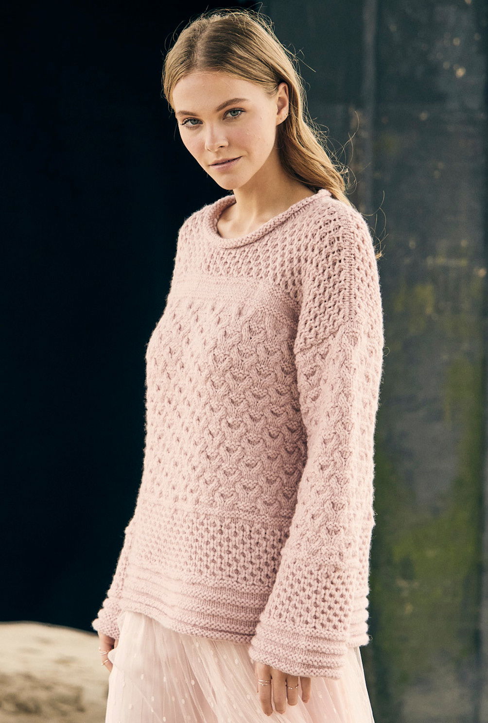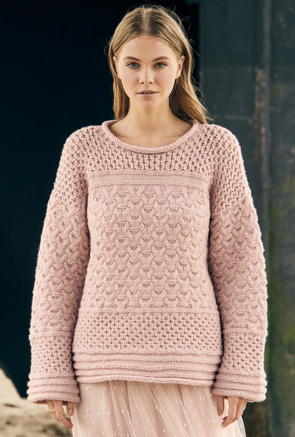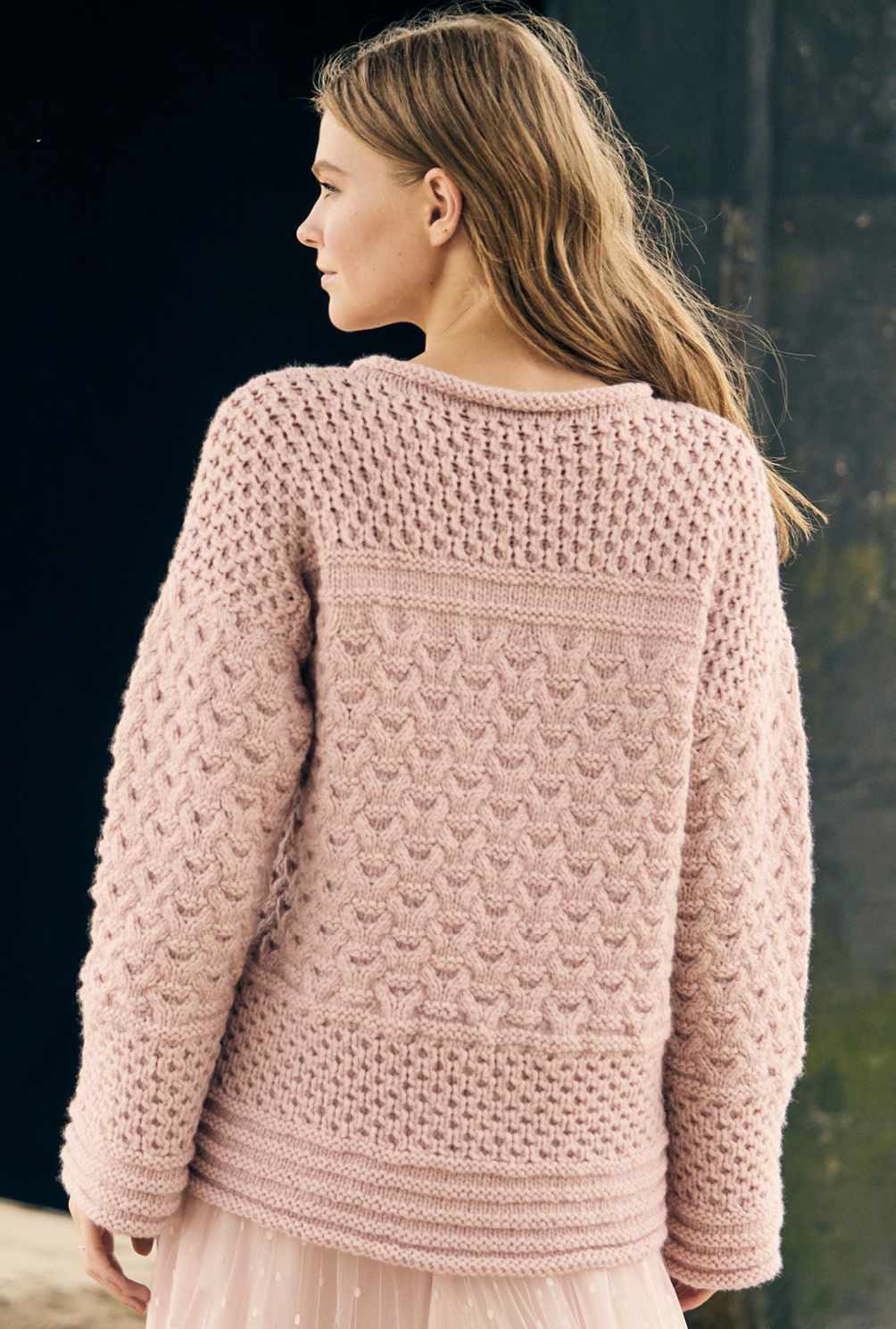Cooler Mustermix und lässiger Schnitt – das findest du in dieser Anleitung. Das eindrucksvolle Zopf- und Wabenmuster macht richtig Spaß beim Stricken und ist durch die ausführliche Strickschrift überhaupt nicht schwer. Rückenteil, Vorderteil und Ärmel werden einzeln von unten nach oben gearbeitet. Hier kommen Musterfans wirklich voll auf ihre Kosten. Trotzdem wirkt dieses Projekt dank des geraden Schnittes nicht überladen und strahl eine feine Eleganz aus. Dafür sorgt auch nicht zuletzt das exquisite Kaschmirmischgarn von LANA GROSSA. Mit Nadelstärke 7, 7, 5 und 8 strickst du dir hier dein Traumteil in Größe 38/40 oder 44/46.