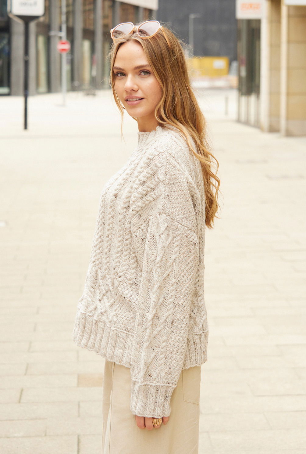 Sabrina Strickjournal Pullover mit Aranmuster in Natur meliert