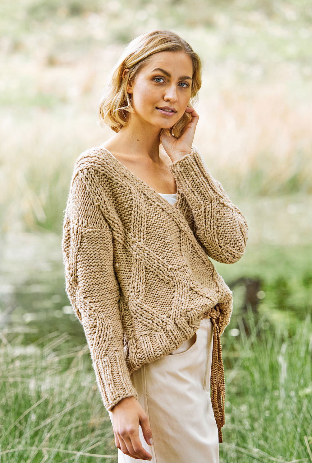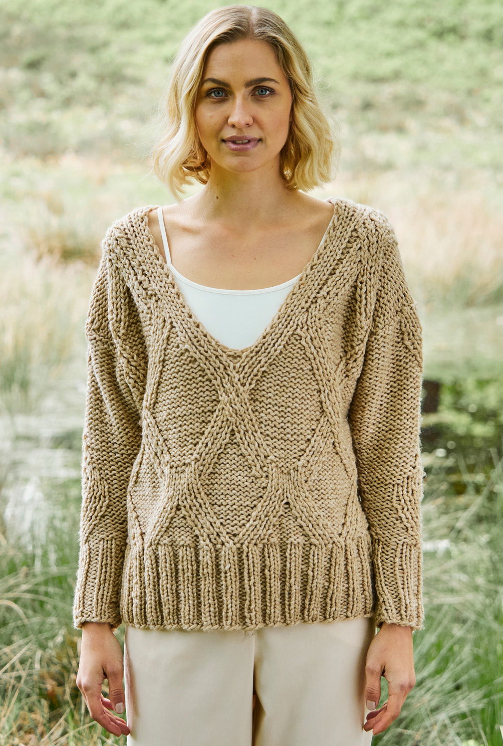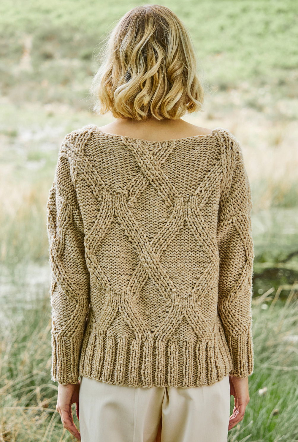 Die Anleitung für diesen Pullover ist in den Größen 36/38 und 40/42 verfügbar.