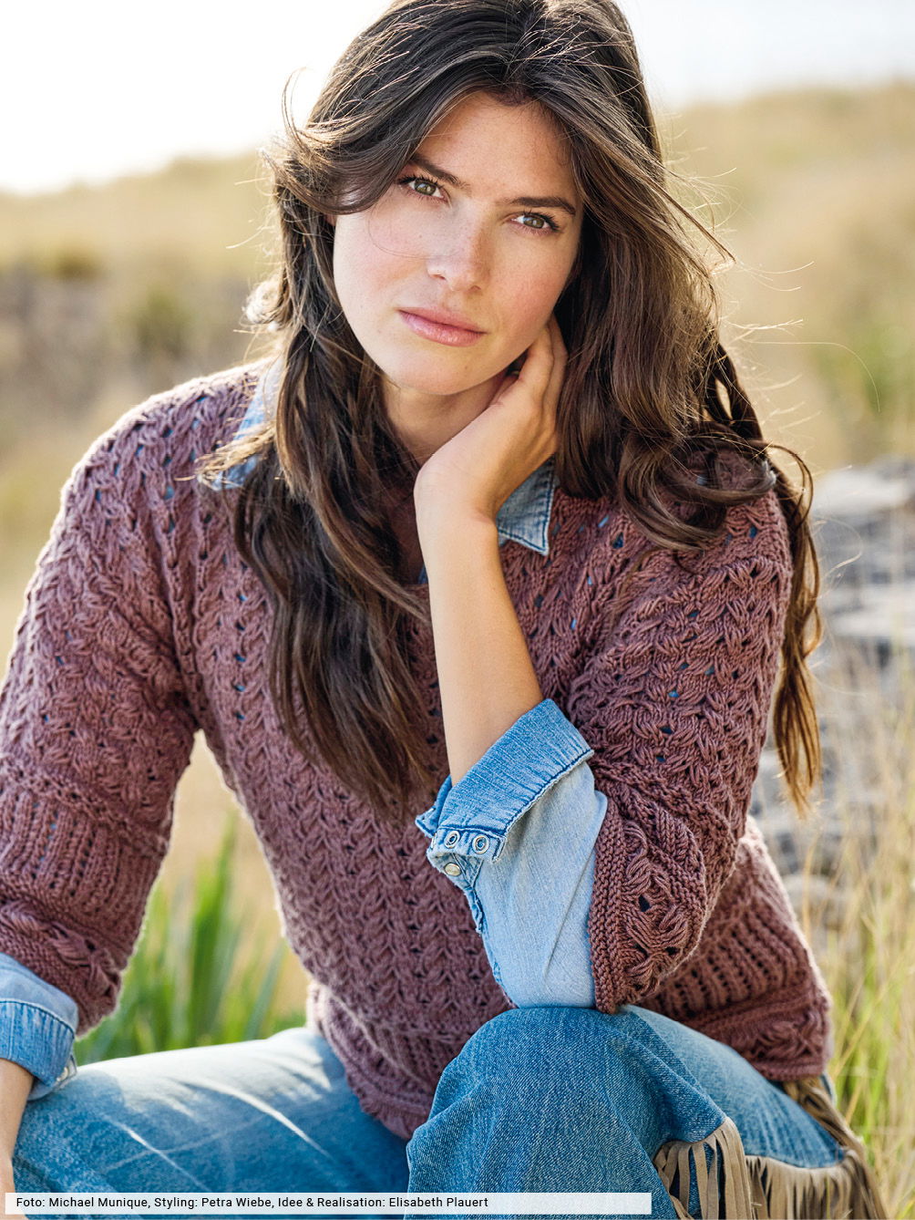 Hier bildet sanftes Nougatbraun die Basis für den natürlichen Charme und die entspannte Optik des Strickstücks. Die Muster sind nicht so ganz entspannt. Wir haben deshalb ganz bewusst auf Strickschriften verzichtet und jedes Muster genau beschrieben, so dass du Reihe für Reihe zum Erfolg kommst. Mit dem «griffigen» Baumwollgarn und dem geraden Schnitt entsteht ein Pulli der Extraklasse, der einerseits für Ruhe, andererseits für Spannung sorgt.
