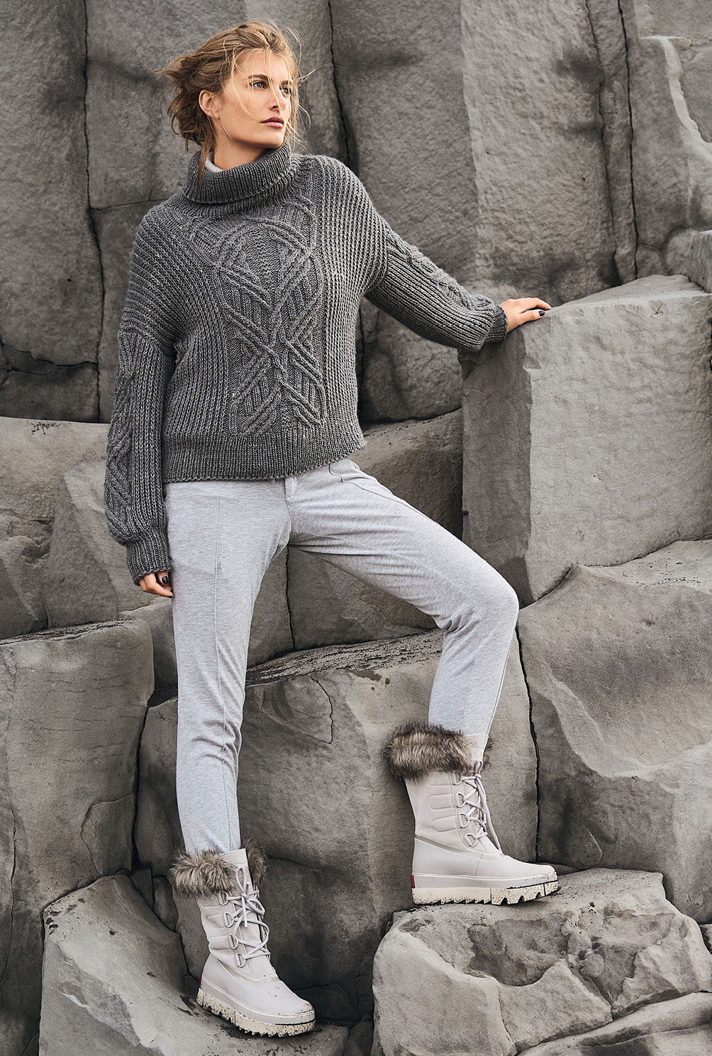 Die Grundlage dieses Pullovers bildet ein Edelgarn, bestehend aus Alpaka, Schurwolle und Seide. Das macht nicht nur Spaß beim Stricken, sondern lässt die Musterstrukturen einzigartig schön zur Geltung kommen. Bei den markanten Zöpfen heißt es aufgepasst, dafür steht dir aber eine übersichtliche Strickschrift zur Seite. Das Halbpatentmuster geht dafür superschnell und einfach von der Nadel. Die Bündchen und der Kragen entstehen aus rechten und linken Maschen und halten alles schön in Form.