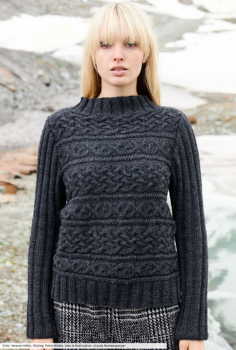 Verena Stricktrends Quergestrickter Zopfmusterpulli