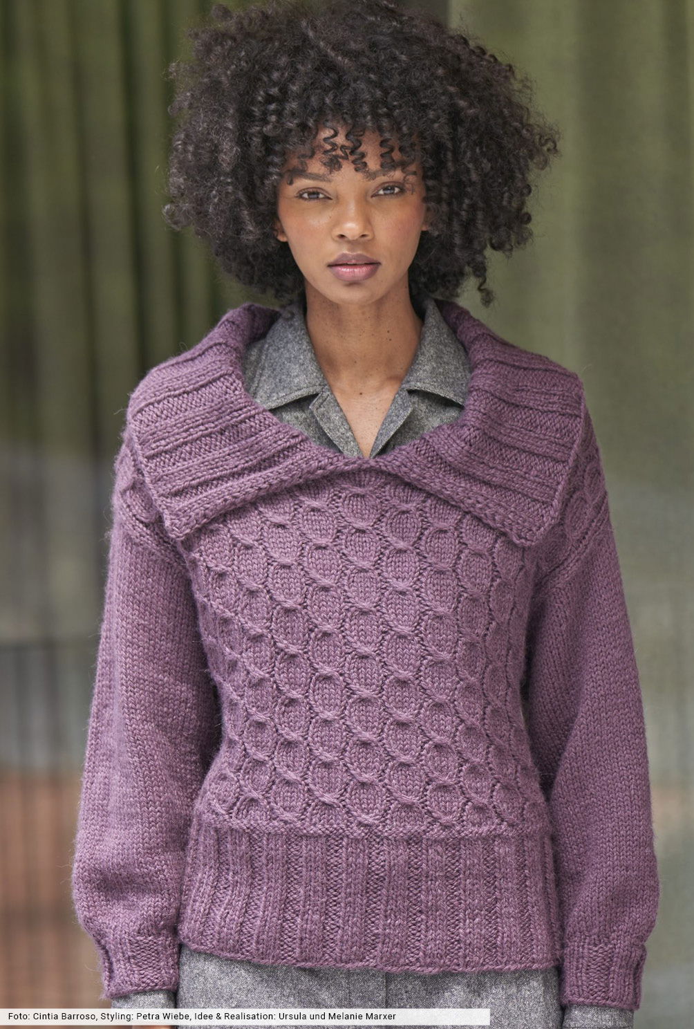 Verena Stricktrends Zopfmuster-Pulli mit großen Kragen