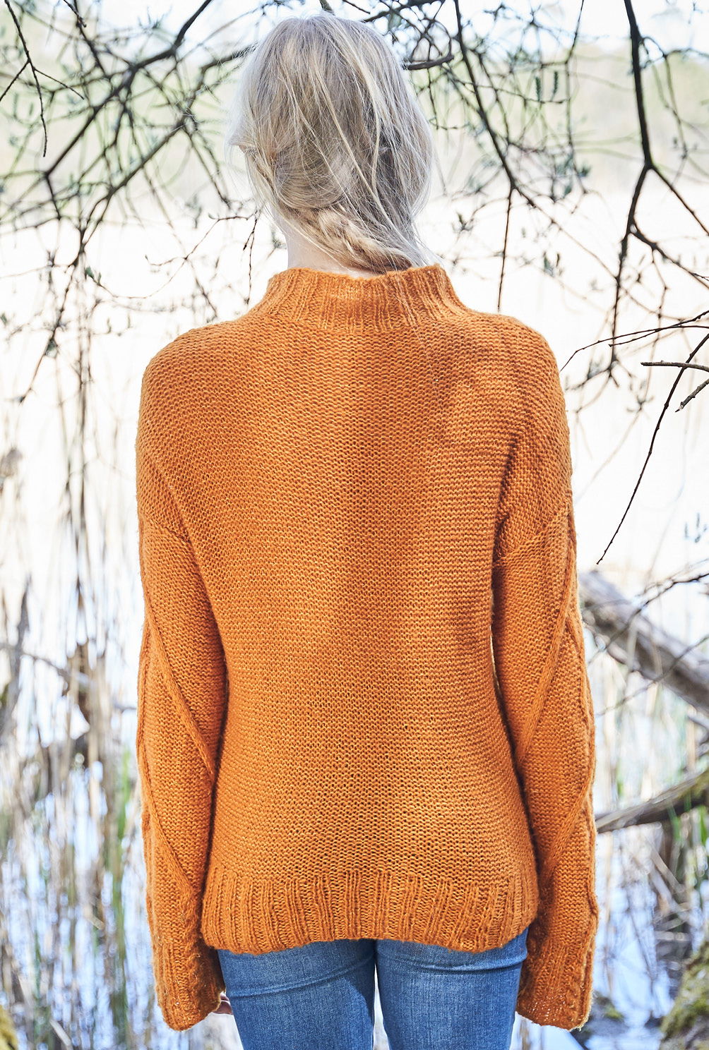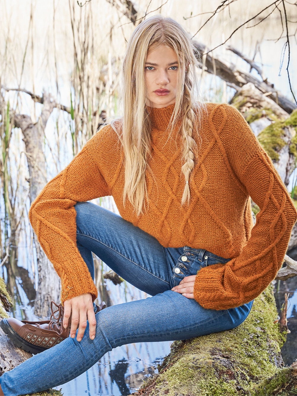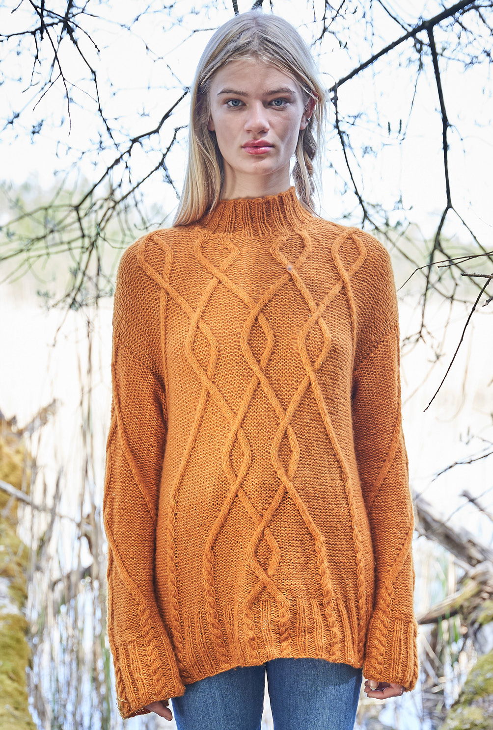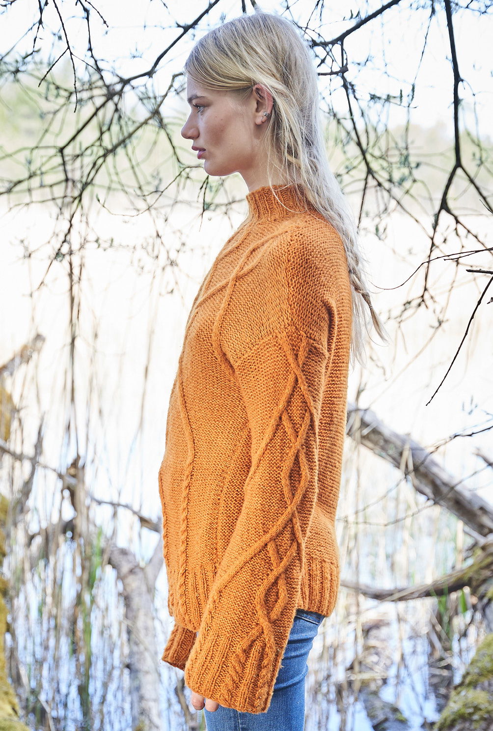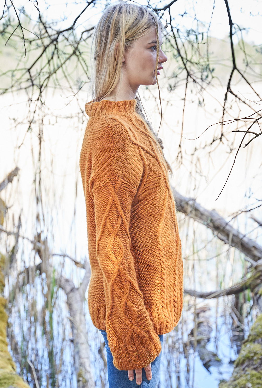 Aranmuster haben in Irland eine lange Tradition. Hier als Pulli mit großzügigen Rautenzöpfen, die aus doppelt verstricktem Kaschmir-Baumwollgarn allover zum Einsatz kommen. Kaum zu glauben, dass früher die komplexen Aranmuster nicht aufgeschrieben wurden. Mütter gaben diese an ihre Töchter weiter – mündlich oder auch in Form von Musterproben. Da haben wir es jetzt zum Glück erheblich leichter. Denn auch wenn das Zopfmuster durchaus etwas Aufmerksamkeit erfordert, hilft die in der Anleitung vorhandene und übersichtliche Strickschrift dabei, stets alle Verkreuzungen im Blick zu behalten. Gestrickt wird in einzelnen Teilen von unten nach oben – sind dann alle vier Teile fertig gestrickt, werden noch alle Nähte geschlossen und aus dem Halsausschnitt die Blende im Rippenmuster herausgestrickt. Fertig ist der geschichtsträchtige, mit vielen Mythen und Legenden verbundene, hier modern interpretierte Aran-Pullover.