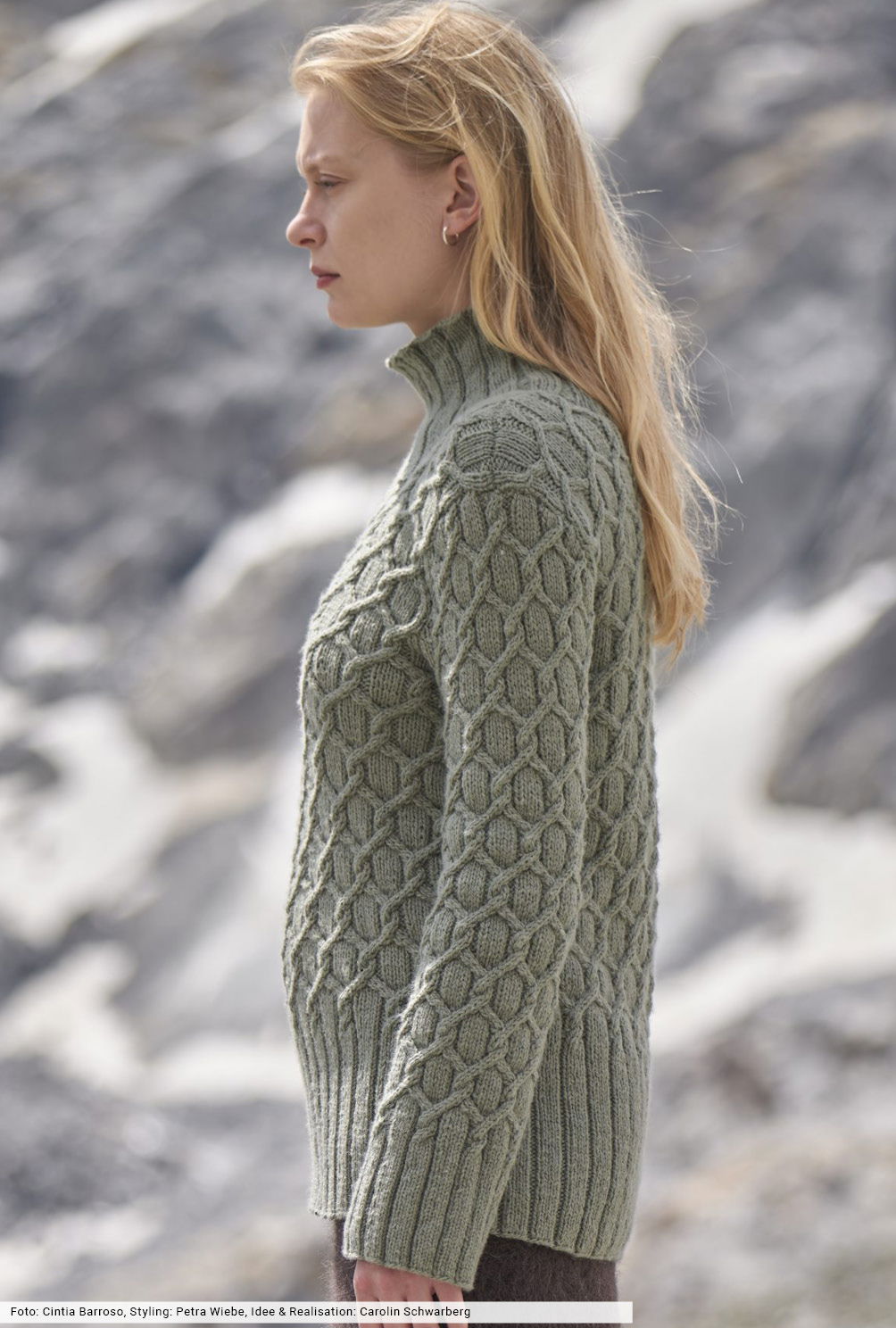 Dieser saloppe Pullover bringt die Kraft des Waldes in deinen Kleiderschrank: mit markanten Wabenstrukturen und einer Farbwelt zwischen Moos und Military. Für das Allover-Muster gibt es natürlich eine übersichtliche Strickschrift, die du in unserer Anleitung findest. Das hochwertige Garn aus Schurwolle und Yak lässt die Strukturen toll zur Geltung kommen, hohe Rippenbündchen aus rechten und linken Maschen sorgen für die modische Silhouette.