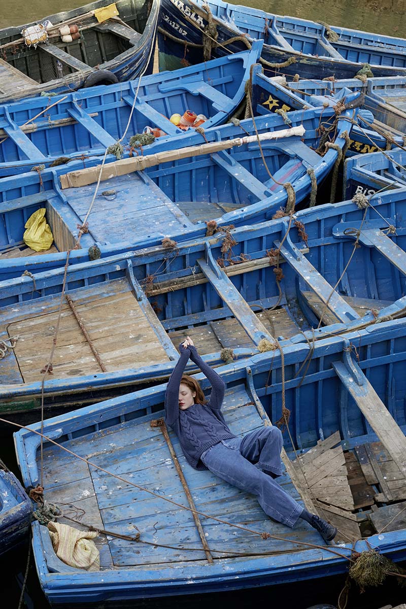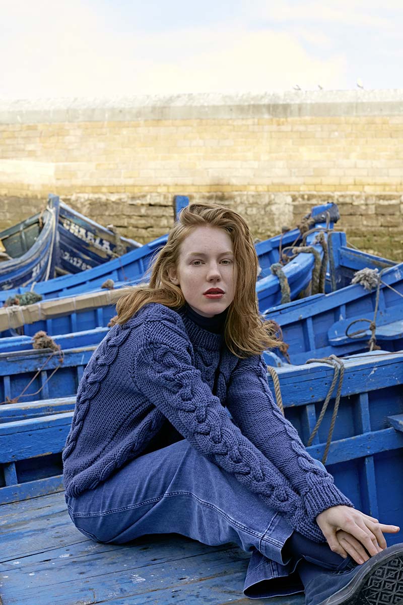 Dieser schöne Pullover hat eine perfekte Passform. Wenn man ihn trägt, fühlt man sich sicher wie ein Schiff, das nach langen Tagen auf See in seinen sicheren Hafen zurückkehrt. Strickanleitung auf Englisch, Französisch, Niederländisch, Deutsch, Dänisch