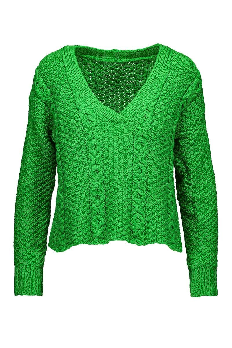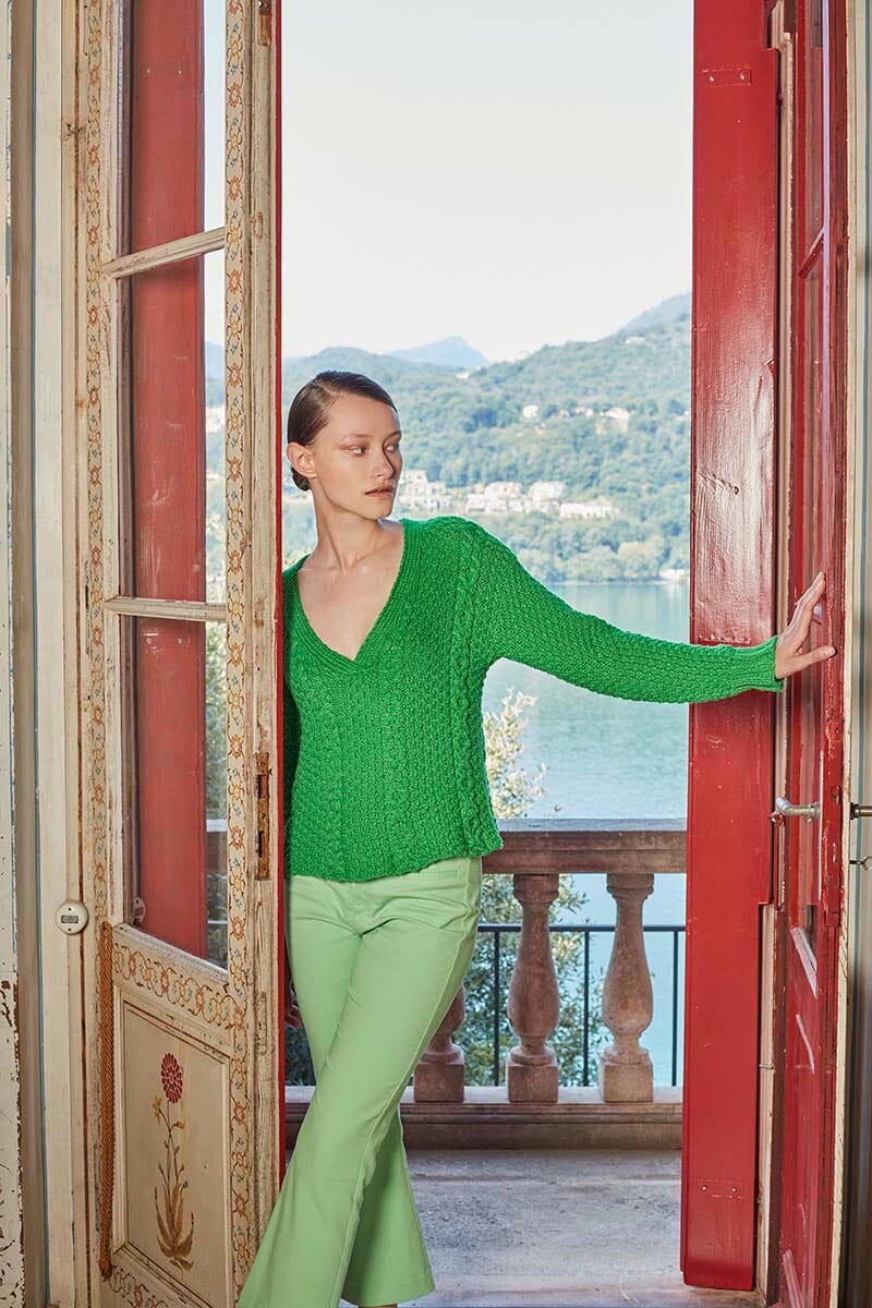 Dieser Pullover hat einen herrlich frischen und intensiv tiefen Grünton. Da er aus «HAPPINESS» gefertigt ist, fühlt er sich wie eine zweite Haut an. Der tiefe V-Ausschnitt sorgt für einen besonders femininen Pullover. Auch dieser Pullover lässt sich vielseitig kombinieren.