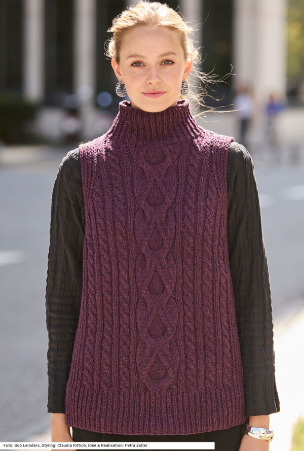 Pullunder stricken wir mittlerweile wieder mit grossem Vergnügen – und liegen damit derzeit voll im Trend! Selten haben wir uns über ein Revival in der Modewelt mehr gefreut als über dieses. Denn gerade das Pullunder Stricken für Damen bietet eine so herrliche Gestaltungsvielfalt, die längst über reine Nostalgie hinausgeht. Die Outfits wirken also alles andere als altbacken, was so manch ein Designer in aktuellen Kollektionen eindrucksvoll unter Beweis stellt. Davon lassen wir uns besonders inspirieren und ermöglichen auch dir das Pullunder Stricken einfach per Anleitung nach einzigartigen Vorlagen. Unsere Rundum-sorglos-Pakete versorgen dich von Wolle bis Nadeln mit allem, was du brauchst. Viel Spass beim Shoppen!