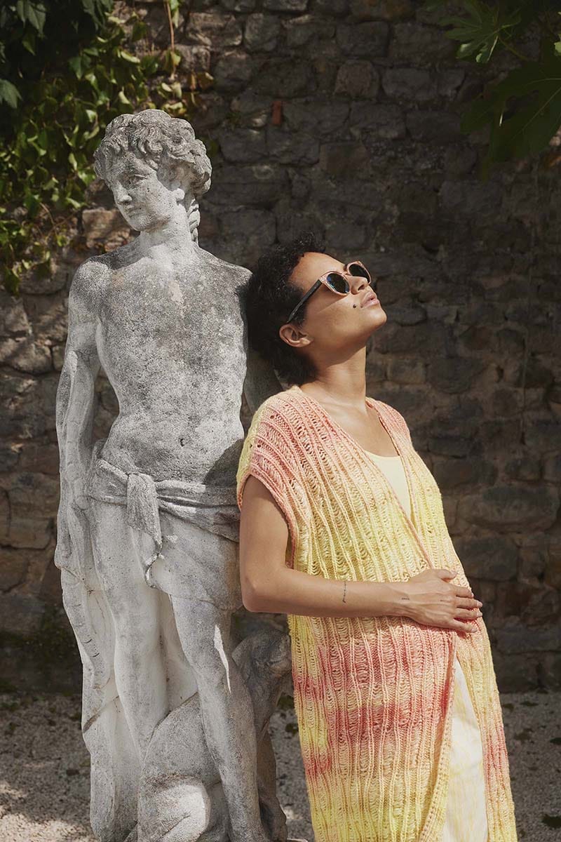 Like the bubbles in a sparkling summer cocktail, the drop stitch pattern on this long vest undulates playfully as it progresses. Combined with the color-changing yarn, this design makes for a quick and entertaining knitting project and a perfect layering piece to add zest to any outfit.