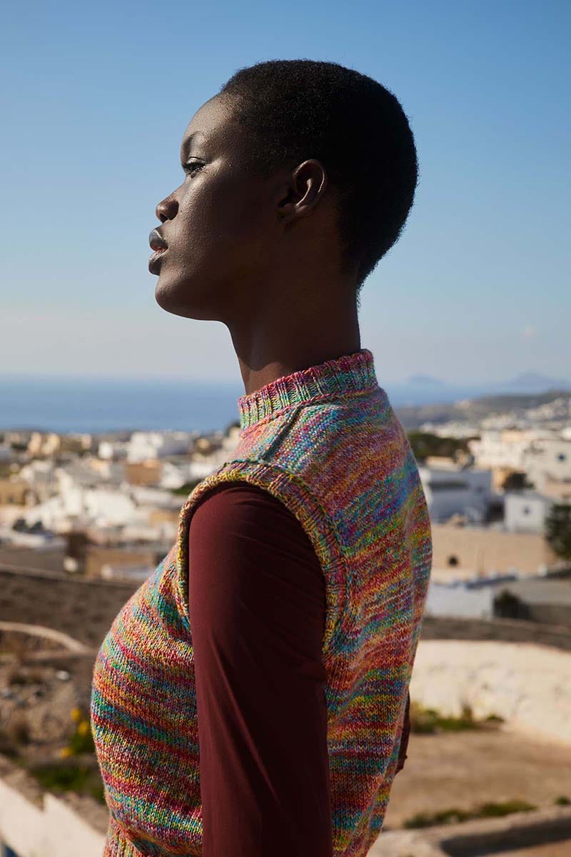 Pattern and yarn come together in perfect symbiosis in the SWEET HARMONY slipover. Its simple shape beautifully showcases the shifting colors of the yarn, while at the same time, the yarn enhances the finer detailslike the visible seamsof the design.