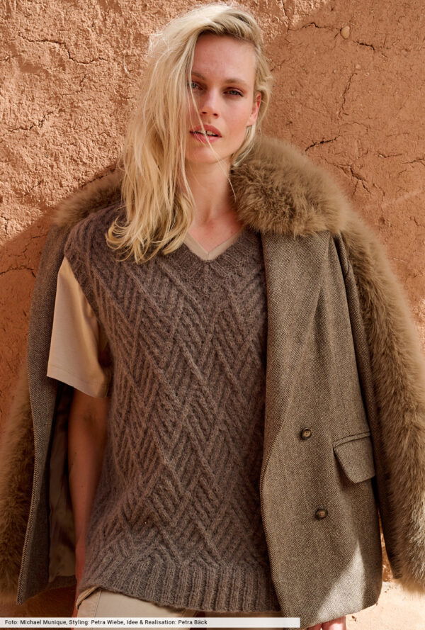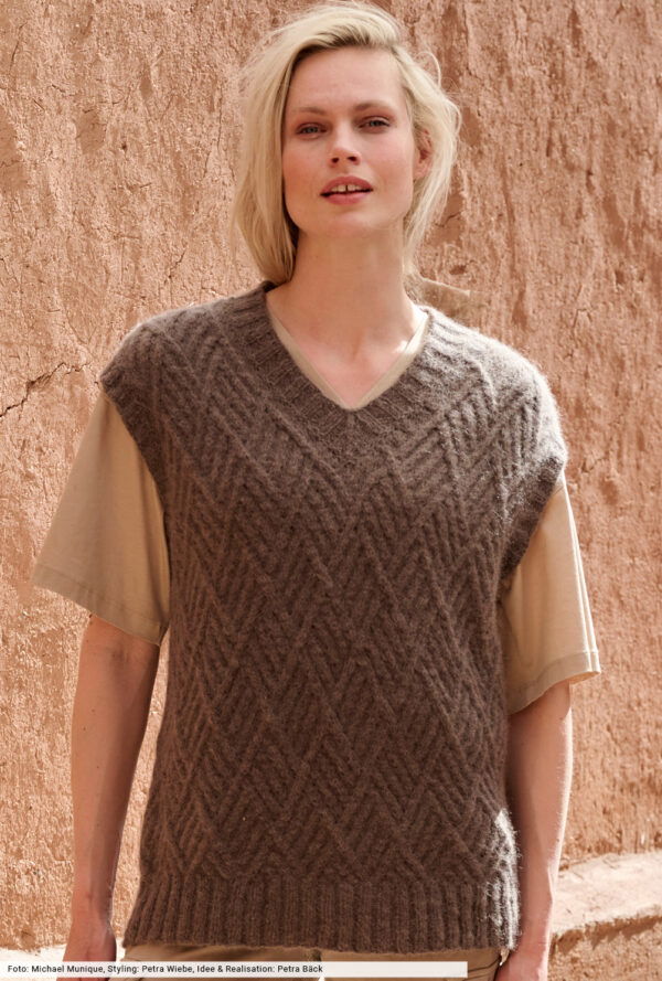 Pullunder stricken wir mittlerweile wieder mit grossem Vergnügen – und liegen damit derzeit voll im Trend! Selten haben wir uns über ein Revival in der Modewelt mehr gefreut als über dieses. Denn gerade das Pullunder Stricken für Damen bietet eine so herrliche Gestaltungsvielfalt, die längst über reine Nostalgie hinausgeht. Die Outfits wirken also alles andere als altbacken, was so manch ein Designer in aktuellen Kollektionen eindrucksvoll unter Beweis stellt. Davon lassen wir uns besonders inspirieren und ermöglichen auch dir das Pullunder Stricken einfach per Anleitung nach einzigartigen Vorlagen. Unsere Rundum-sorglos-Pakete versorgen dich von Wolle bis Nadeln mit allem, was du brauchst. Viel Spass beim Shoppen!