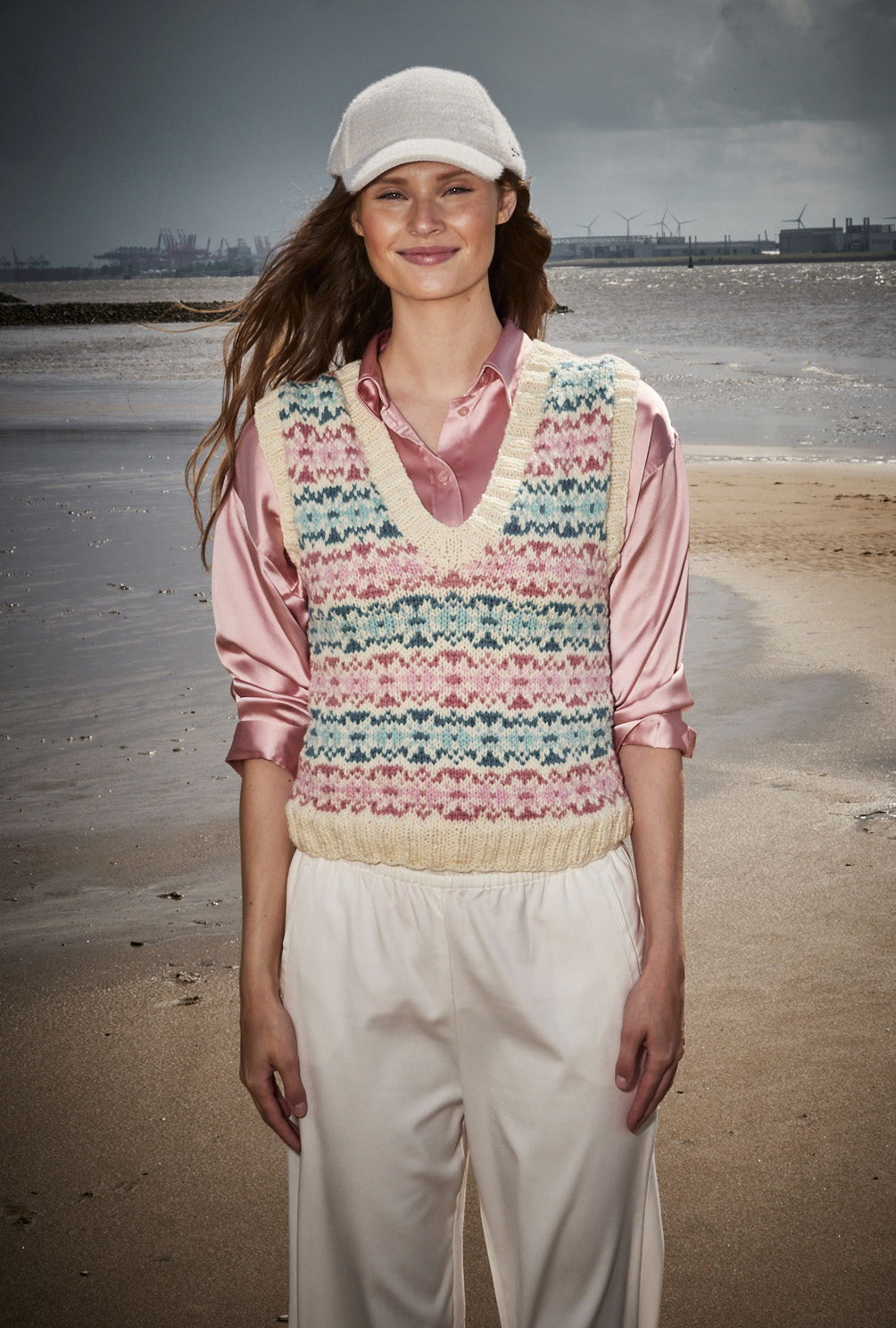 Sabrina Strickjournal Pullunder mit Jacquardmuster in Natur, Jeansblau, Rosa, Rosenholz und Mint