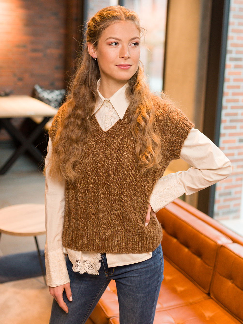 Verena Spezial Timber - Pullunder mit Zöpfen in Cognac