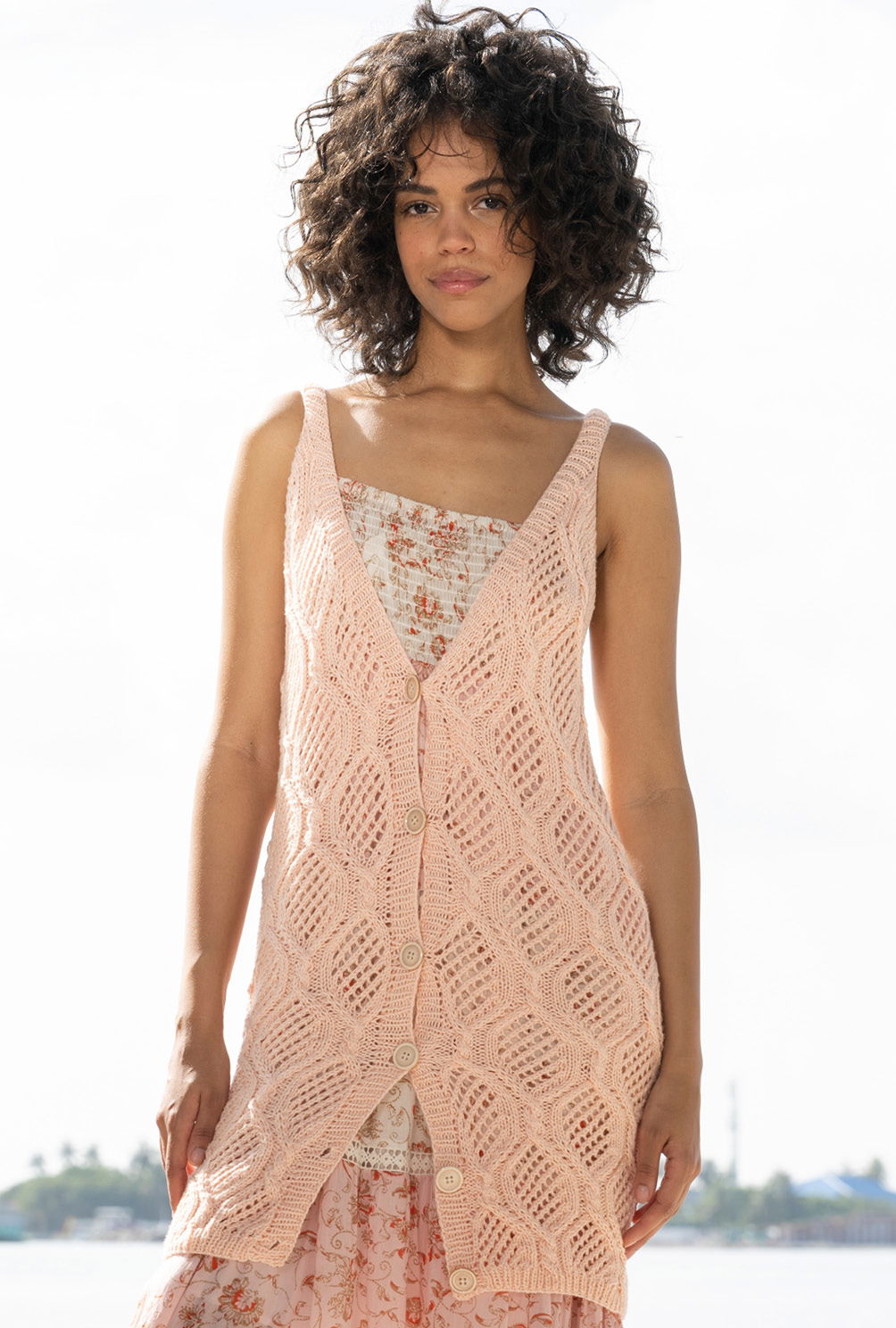 Ob zu romantischen Kleidern oder skinny Hosen: Die figurbetonte Weste mit schmalen Rippenblenden und dekorativer Knopfleiste komplettiert jedes sommerliche Outfit und ersetzt in geschlossenem Zustand das Top. Allerdings sollte man bei dem großflächigen Rauten-Lochmuster anhand einer Maschenprobe etwas üben. Dafür haben wir in unserer Anleitung eine übersichtliche Strickschrift erstellt, die Dir die Arbeit erleichtert. Das makellose Finish bilden die Verschlussblenden und Träger, die nochmal volle Konzentration erfordern. Aber das Ergebnis lohnt sich!