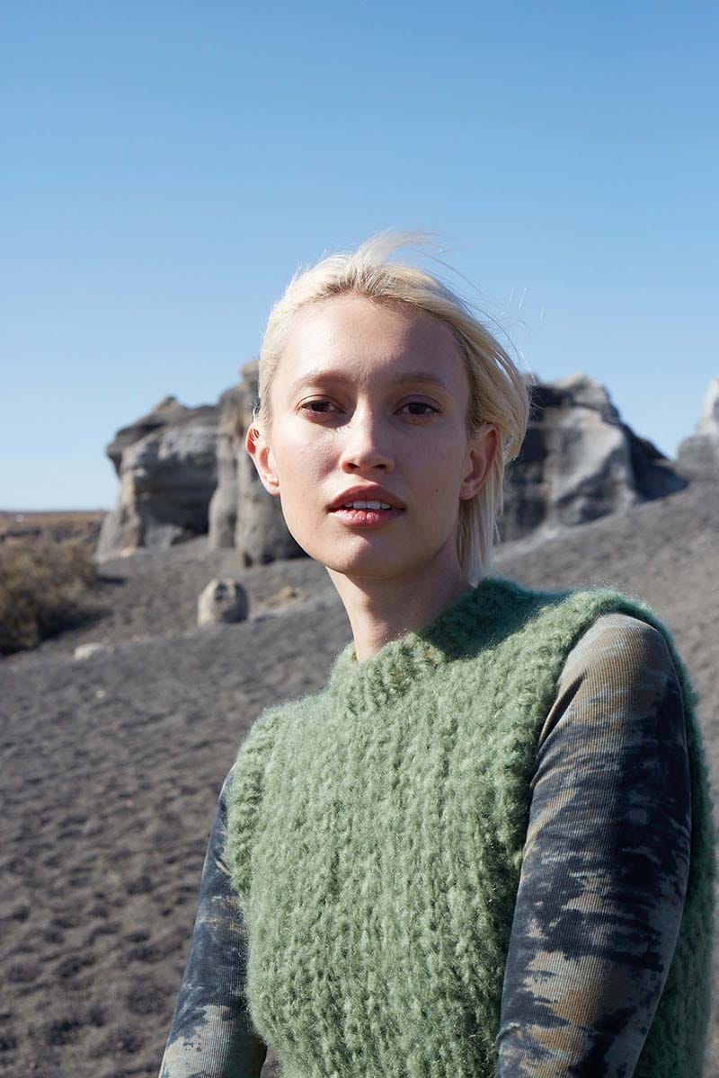 This slipover, aptly named EVERGREEN TONIC, serves as a wellspring of enduring inspiration. Each row, while distinct also slots seamlessly into the fabric of the ones that came before. With every new stitch, it captures the essence of freshness and rejuvenation anew.