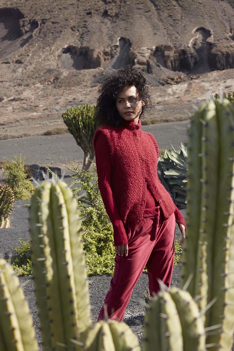 This textured vest is a meditative knitting journey. Intricately designed with a blend of knit and purl stitches, it creates a tapestry of tactile richness that mirrors the layers of calm found in a serene sanctuary. Embark on this project to discover your own, personal knitting sanctuary.