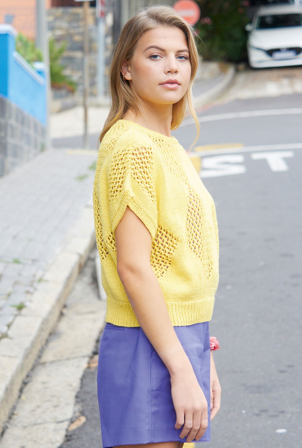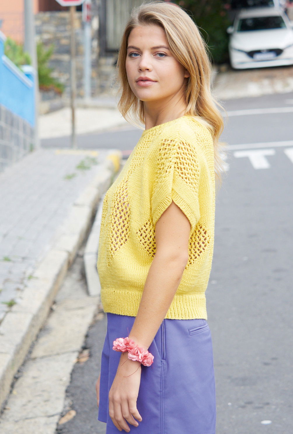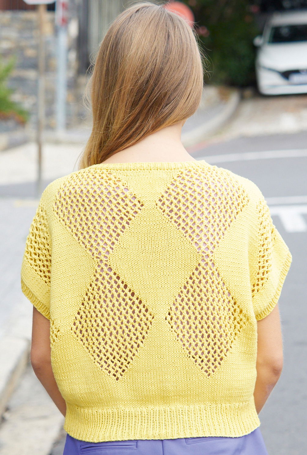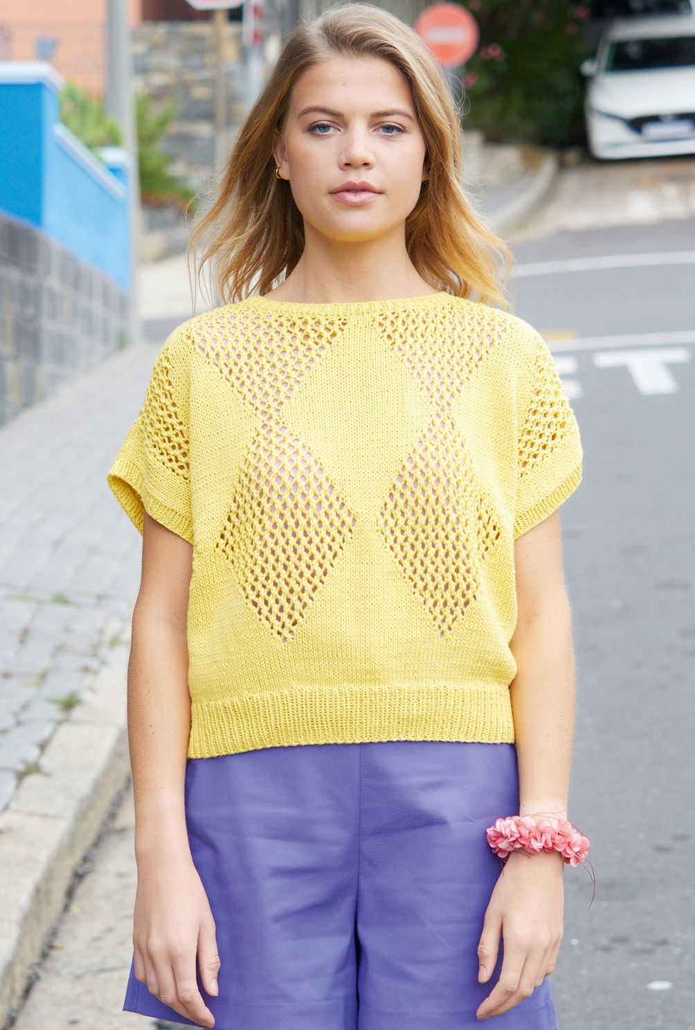 Sabrina Strickjournal Gelber Sommerpulli mit Lochmusterrauten